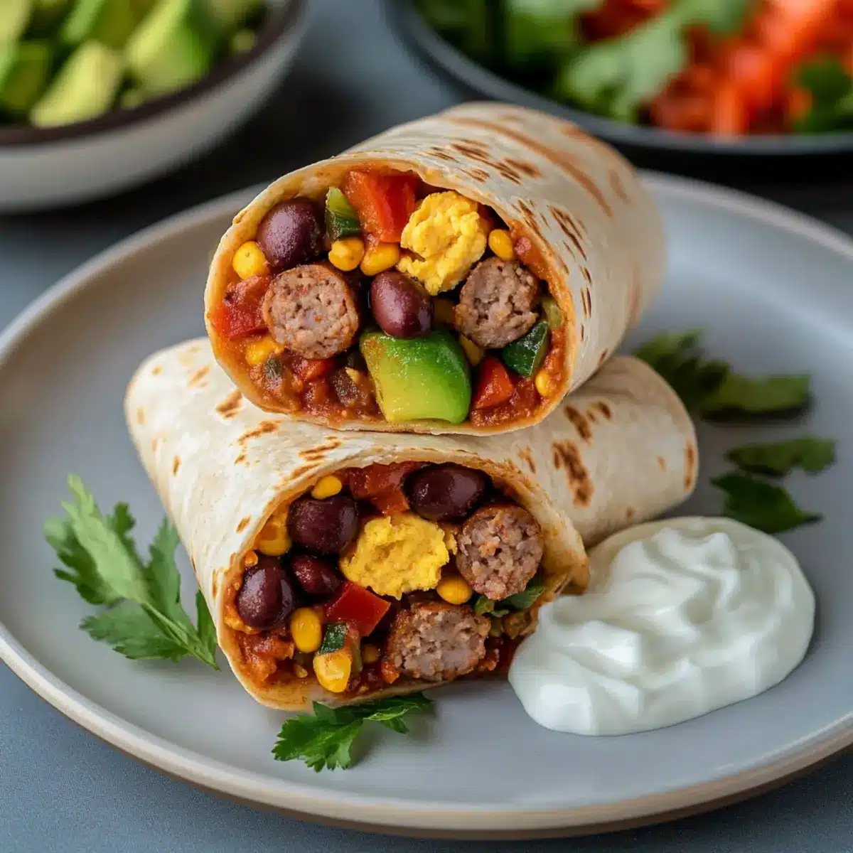 Absolutely! You can make these burritos vegetarian by substituting the lean turkey sausage with crumbled extra-firm tofu or plant-based sausage. Plus, feel free to swap Greek yogurt with dairy-free alternatives to accommodate anyone with lactose intolerance.