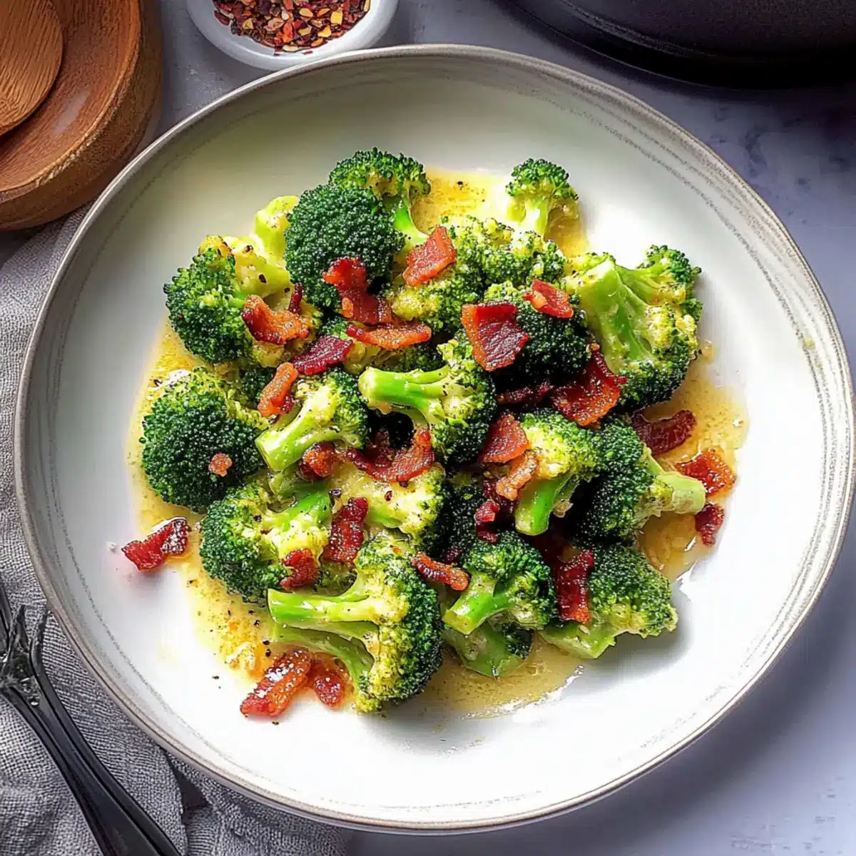 Broccoli With Garlic Sauce & Bacon for Flavorful Crunch