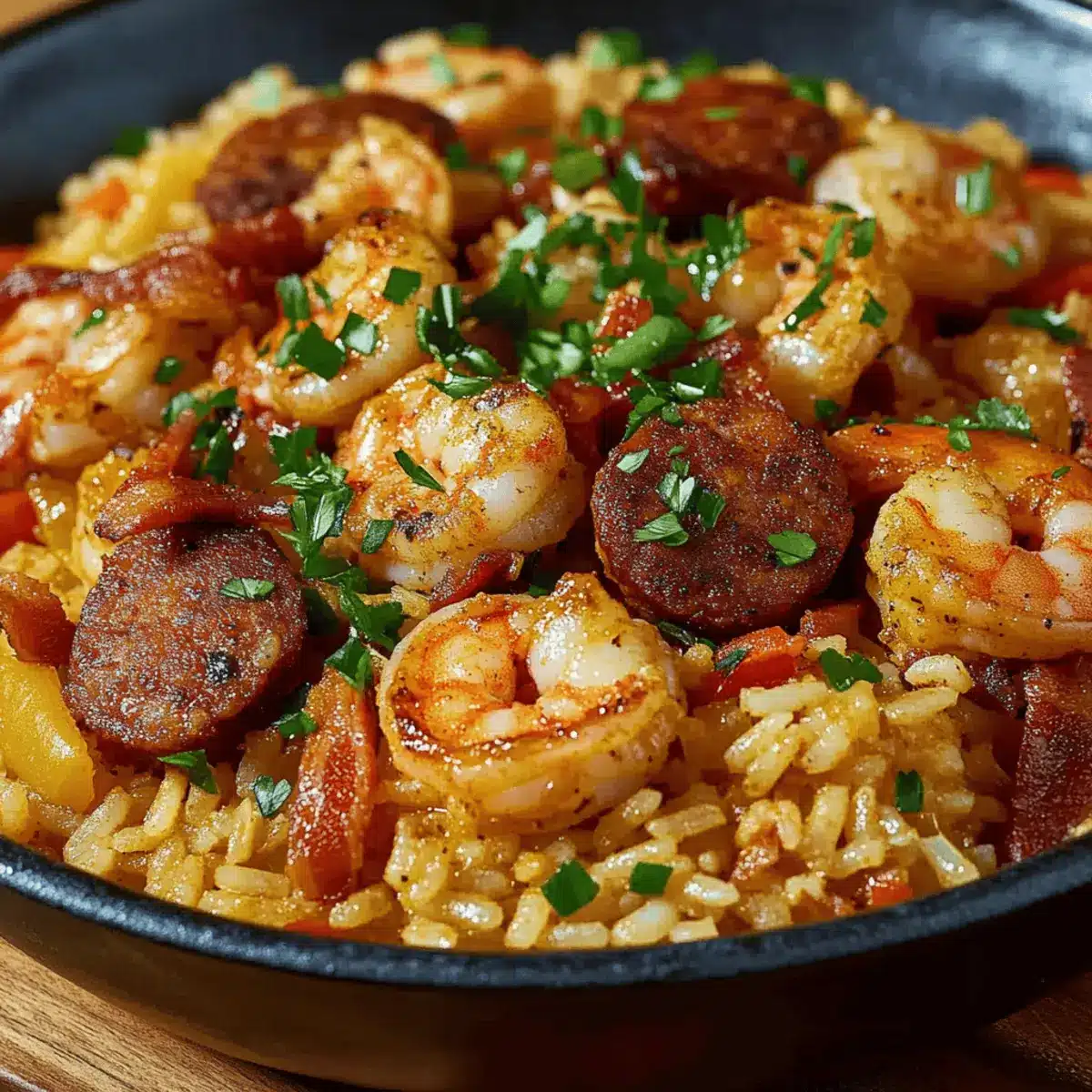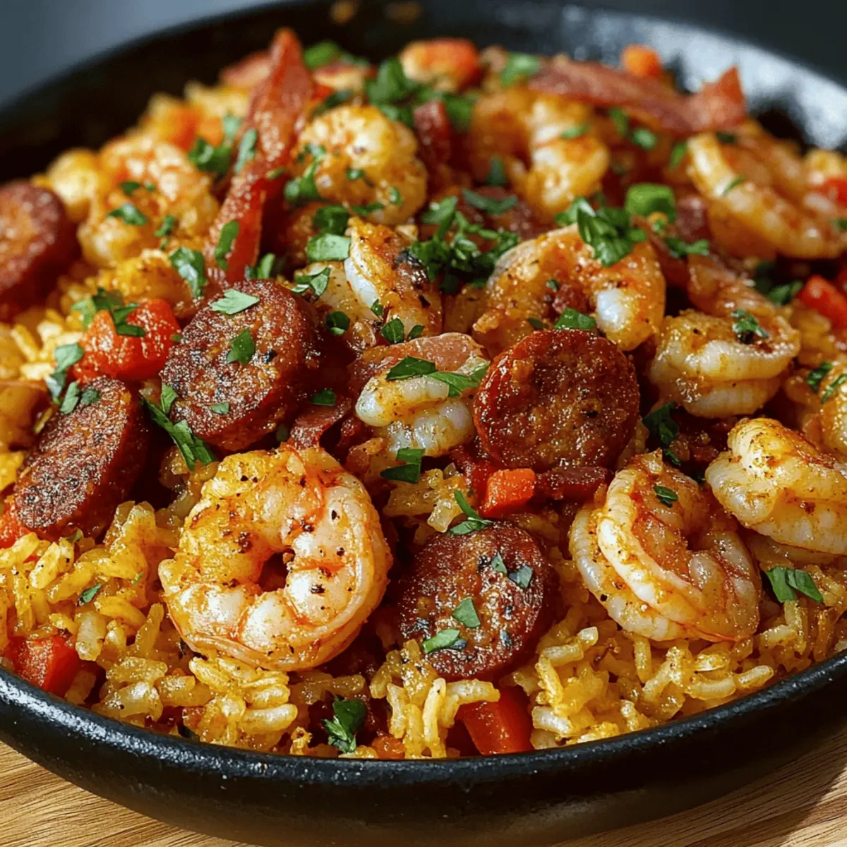 Comforting, this meal wraps you in a blanket of warmth with its hearty blend of spices and proteins. Flavor-packed, each bite bursts with the right amount of zest from the juicy shrimp and savory sausage. Easy to customize, you can effortlessly adapt it to suit any dietary preferences, whether swapping sausage for tofu or adjusting spice levels. Perfect for gatherings, it impresses guests while saving you time in the kitchen—just like my Cheesy Hamburger Rice or Chicken Rice Taco. With its authentic textures and vibrant flavors, this dish guarantees a satisfying meal that will have everyone coming back for seconds!