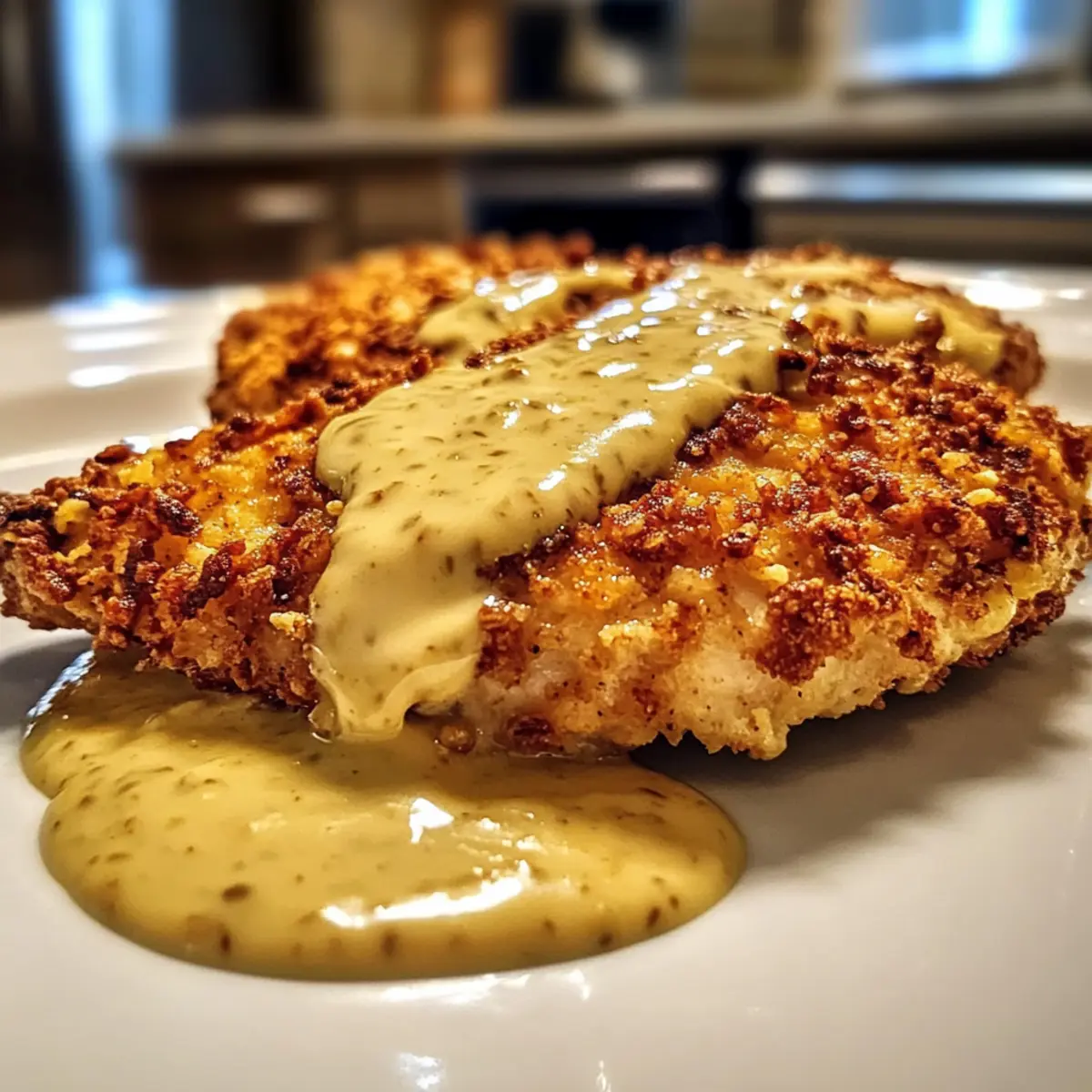 Crispy Pretzel Chicken with Mustard-Cheddar Sauce Delight