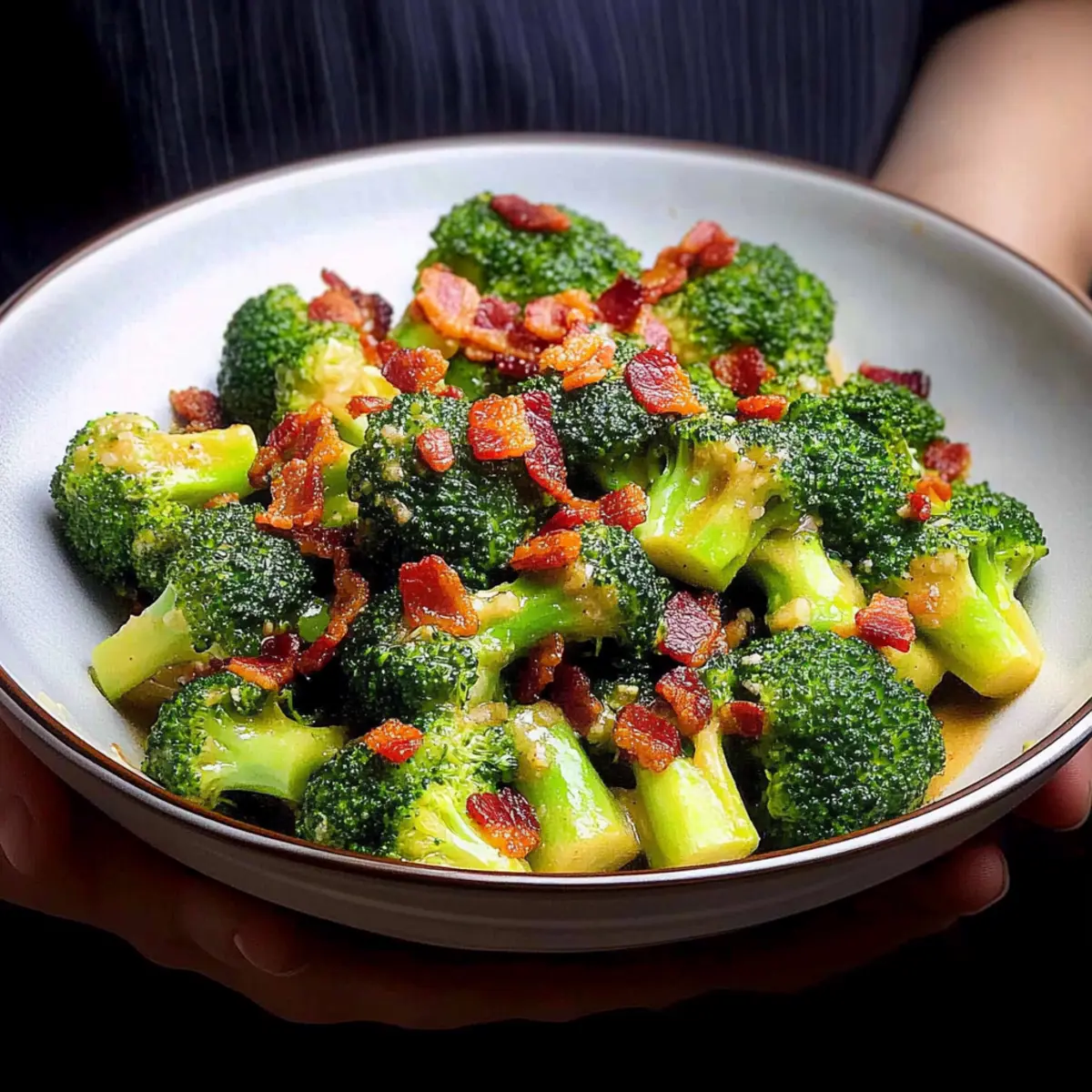 Savory Broccoli With Garlic Sauce & Crunchy Bacon Bliss
