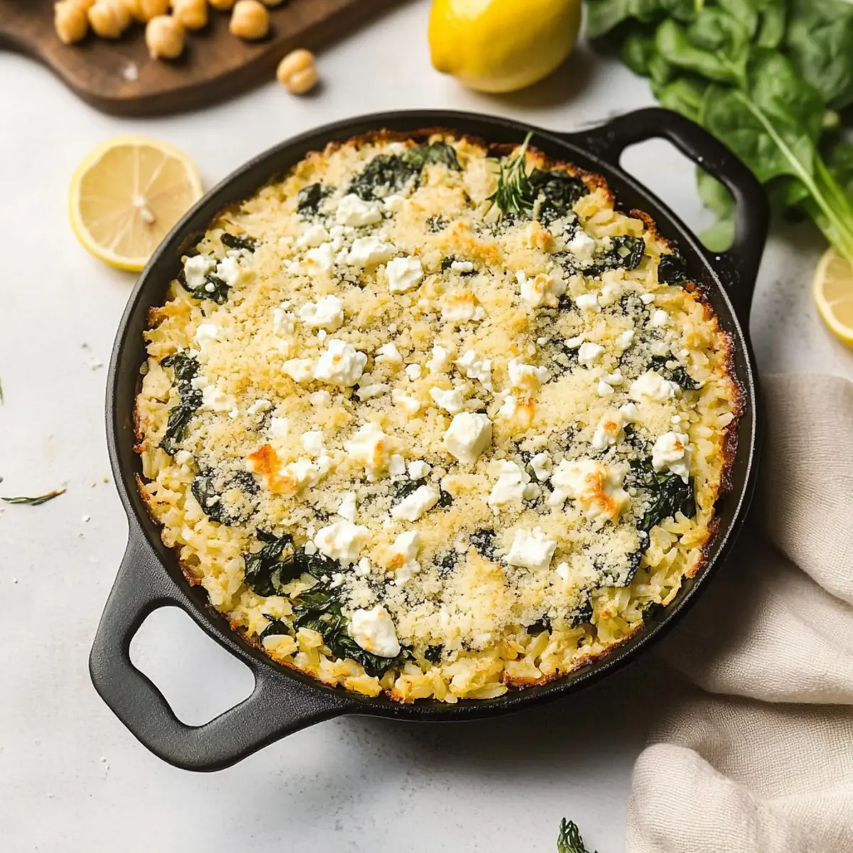 Lemony Spinach Feta Rice Casserole with Chickpeas Bliss