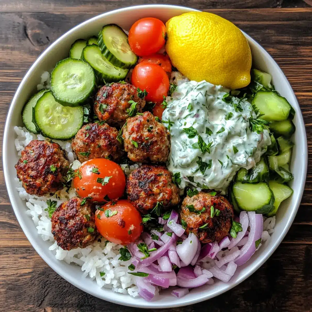 Greek Meatball Bowl with Tzatziki, Rice & Fresh Veggies Bliss