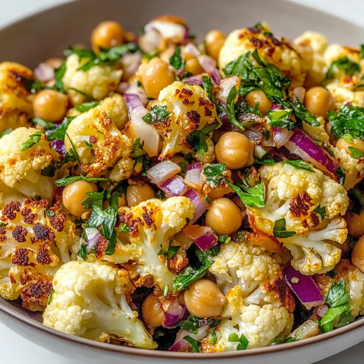 Chickpea and Roasted Cauliflower Salad with Lemon Garlic Dressing Delight