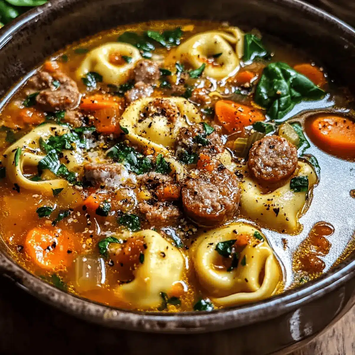 Cozy Autumn Tortellini Soup with Savory Sausage Delight