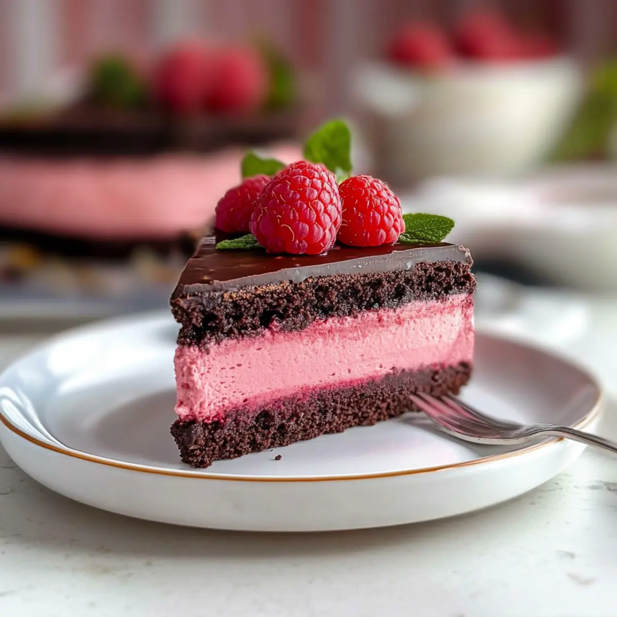 Decadence Redefined: This Chocolate Raspberry Mousse Cake elegantly balances rich chocolate and tart raspberry, ensuring every bite is a delightful experience.