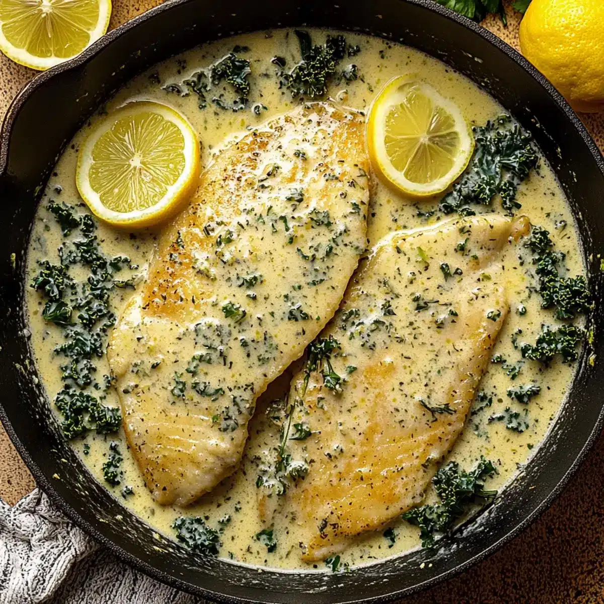 Experiment with Greens: While kale adds great nutrients, try substituting it with spinach or sautéed zucchini for a different flavor and texture—your creamy lemon garlic herb tilapia will still shine!