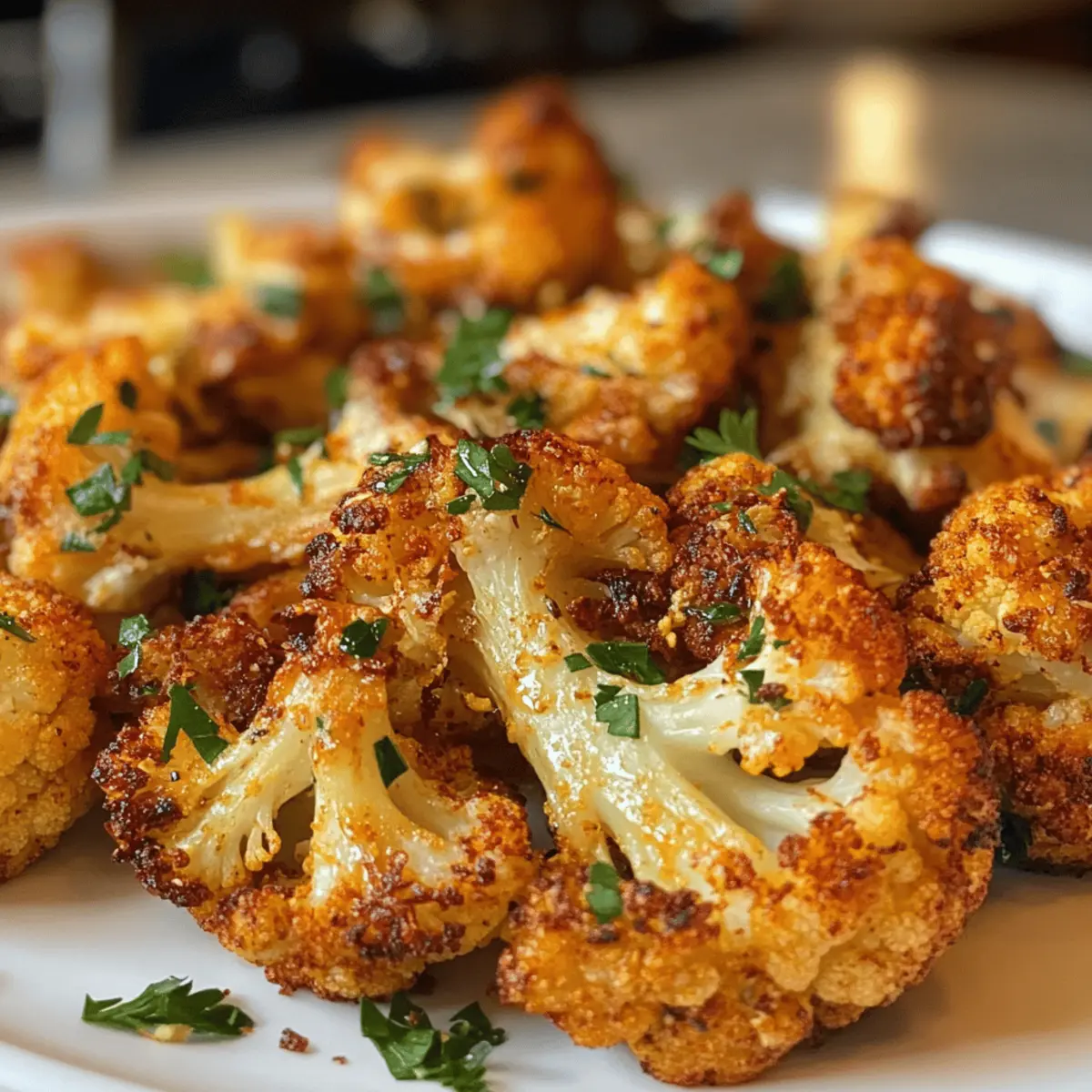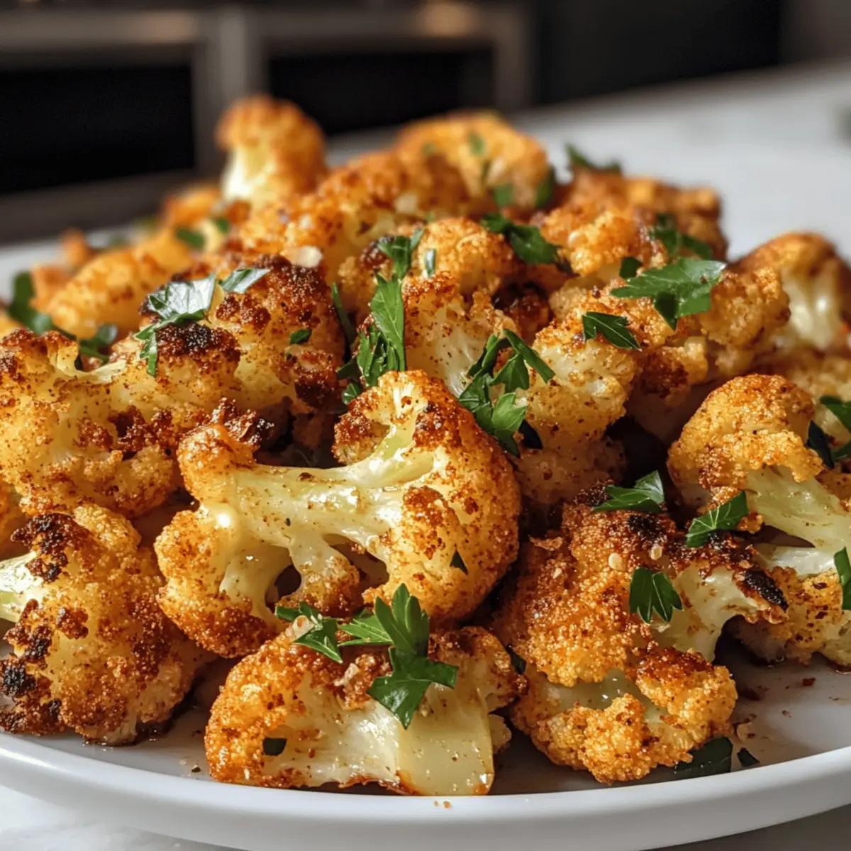 Once the crispy roasted cauliflower has reached peak perfection, remove it from the oven. If you’d like, sprinkle grated Parmesan cheese over the top for extra flavor. Garnish with finely chopped fresh parsley to add a pop of color and freshness before serving, making this dish even more appealing to your guests.