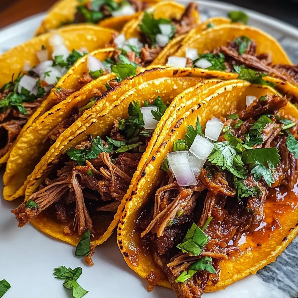 Serve your Crock Pot Birria Tacos hot, alongside a small bowl of the rich broth for dipping. Garnish with fresh cilantro and diced onions for an added burst of flavor. These delightful tacos are sure to be a hit at any meal, bringing the tantalizing taste of Mexico right to your table.