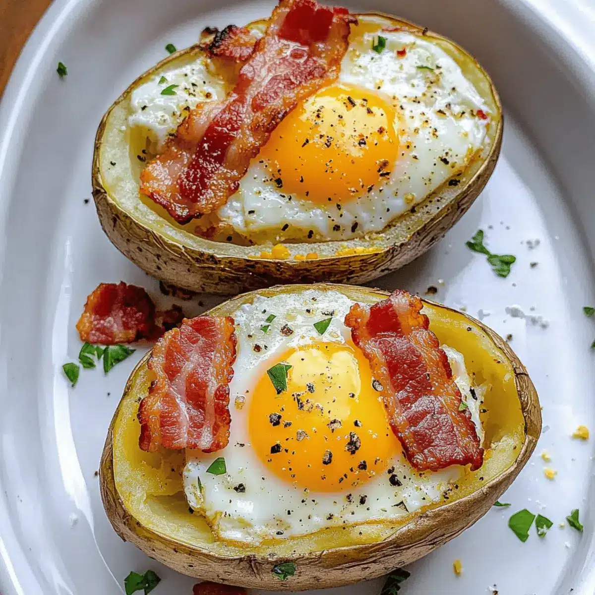 You can enhance the flavor by experimenting with different spices! Adding a sprinkle of paprika, cumin, or even a dash of hot sauce can elevate your Double Baked Bacon and Egg Potatoes to the next level. Don’t hesitate to get creative—varying the cheese type or including fresh herbs can also add a wonderful twist!