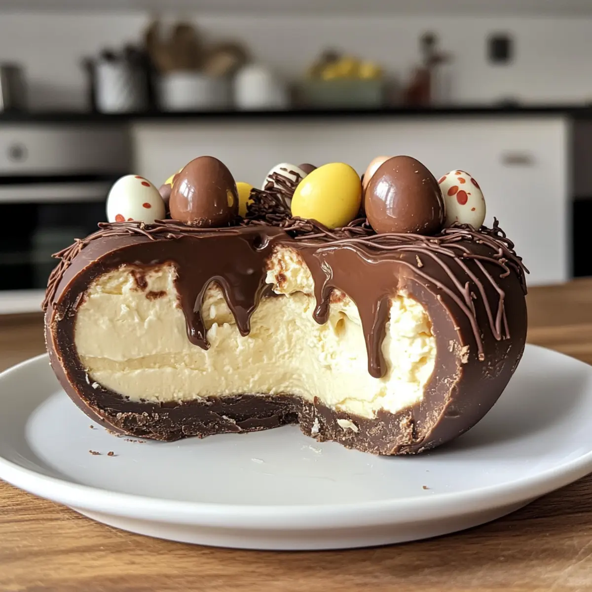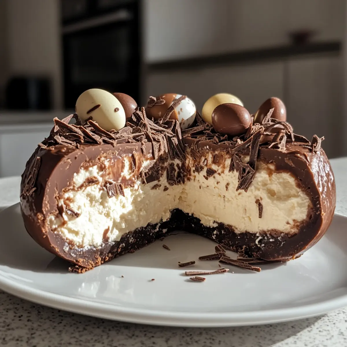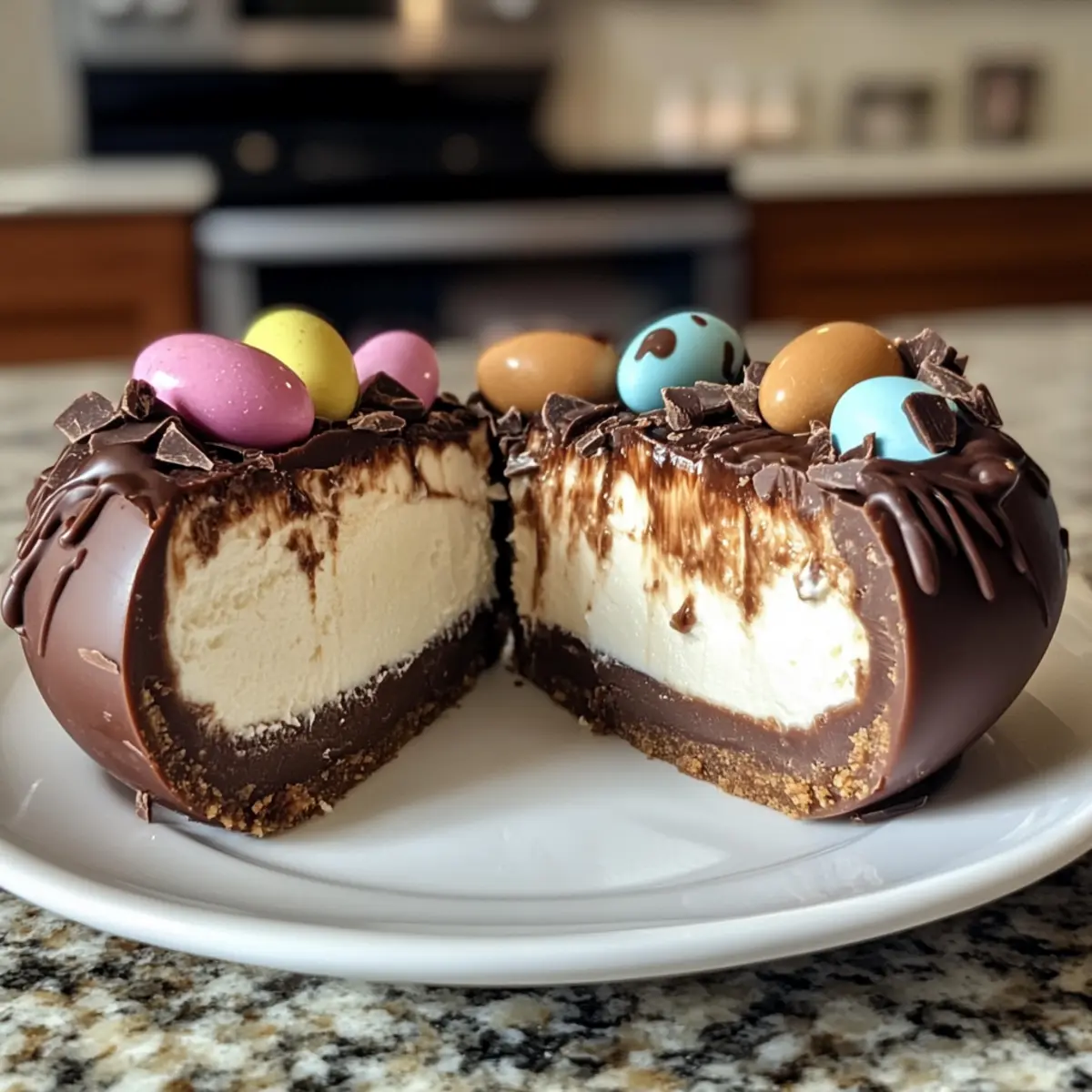 Deconstructed Style: If you’ve got broken chocolate eggs, scoop the cheesecake filling into jars and layer with crushed cookie bits and chocolate drizzle for a charming deconstructed dessert.