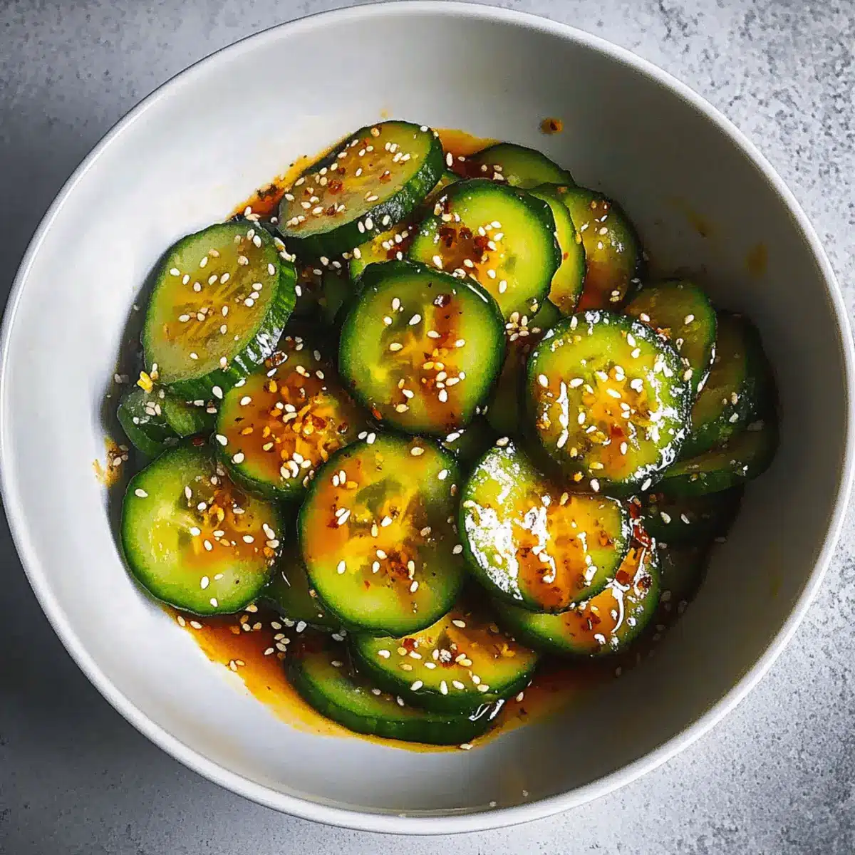 These Easy Asian Cucumber Salad preparations are perfect for busy home cooks looking to save time! You can slice the cucumbers and salt them up to 24 hours in advance, letting them sit in the refrigerator to draw out moisture. Simply rinse the salted cucumbers and store them in an airtight container. The dressing can also be mixed and refrigerated for up to 3 days. When you’re ready to serve, just combine the prepped cucumbers with the dressing and any garnishes (like sesame seeds) right before serving to maintain that delightful crunch. This way, you’ll enjoy a vibrant, flavorful salad with minimal effort, allowing you to focus on other aspects of your meal prep!