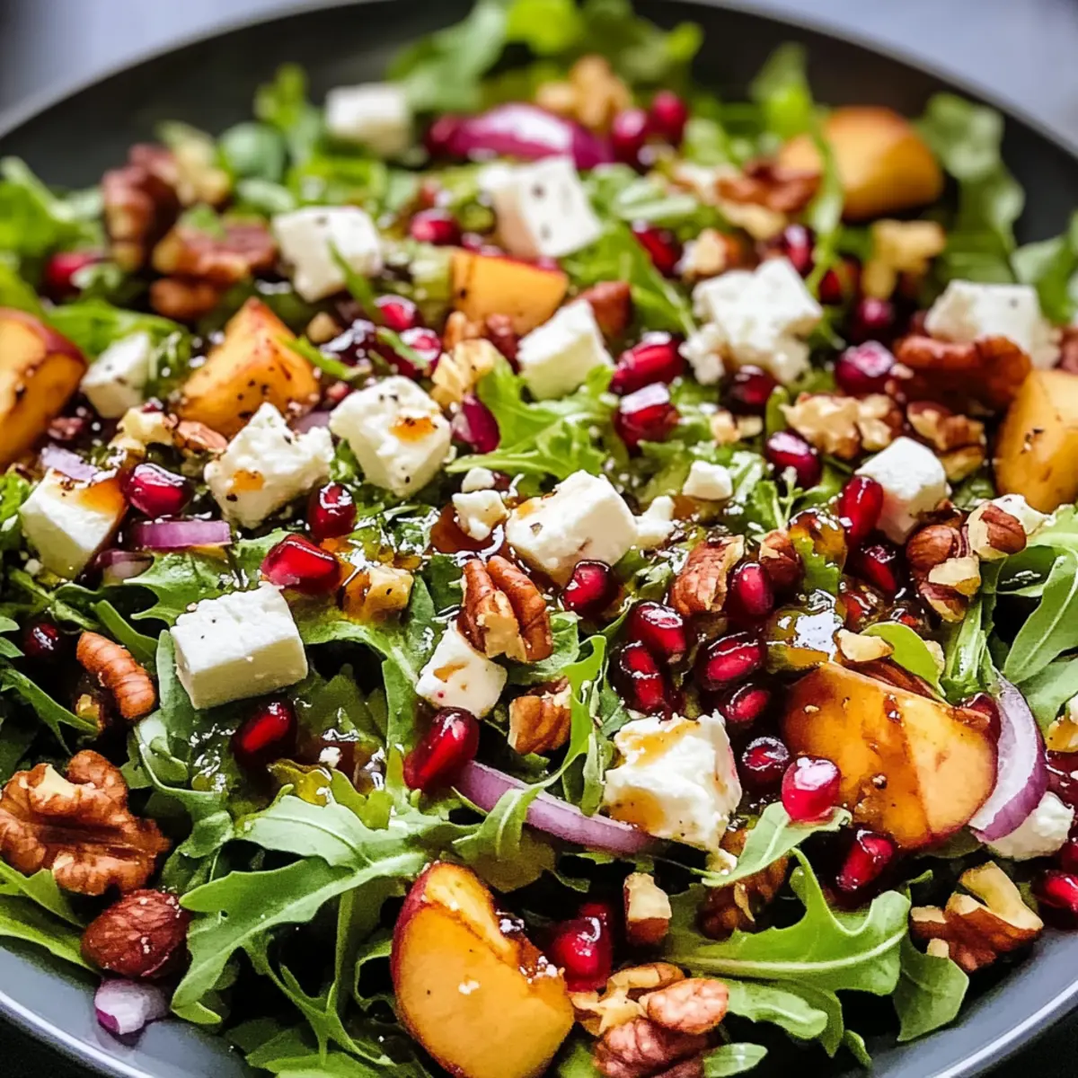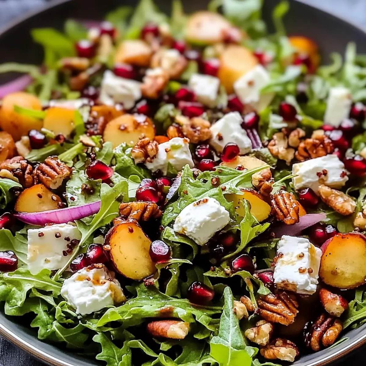 Vibrant Flavors: The combination of fresh mixed greens, juicy pomegranate seeds, and creamy feta creates a delightful explosion of taste that captures the essence of autumn.