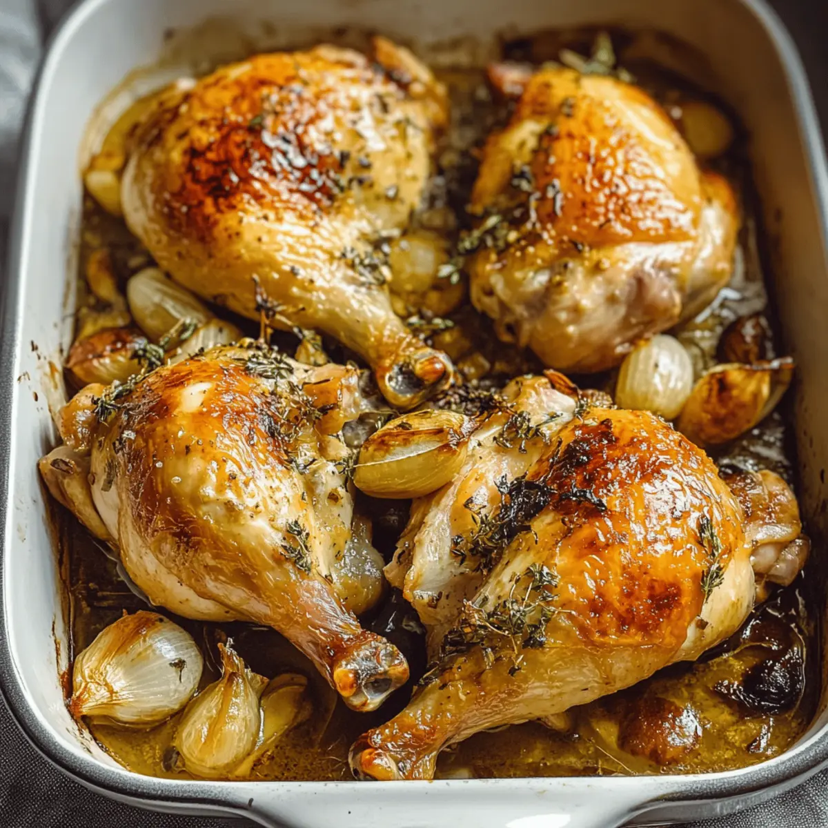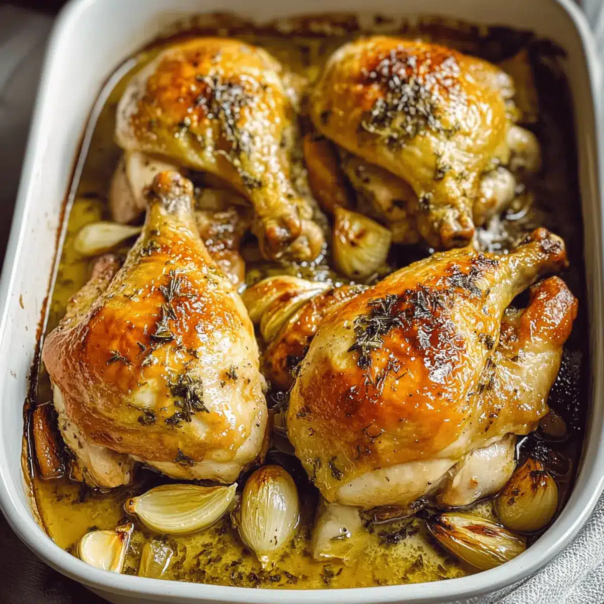 Once the chicken is perfectly roasted, take it out of the oven and spoon the flavorful pan juices over the chicken. This step adds extra moisture and infuses more of that delightful garlic and herb flavor into the dish. Pair your Oven-Roasted French Garlic Chicken with creamy mashed potatoes, rice, or vibrant roasted vegetables to complete your comforting meal.