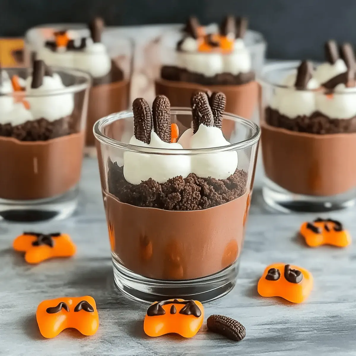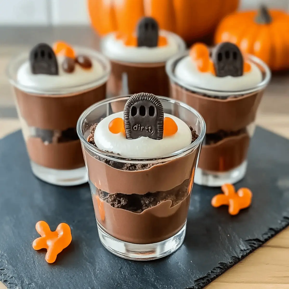 These Ghosts in the Graveyard Shooters are perfect for meal prep enthusiasts! You can prepare the chocolate pudding layer up to 24 hours in advance by mixing it and refrigerating it in an airtight container, ensuring it remains creamy. Additionally, you can crush the Oreos a day ahead and store them in a separate container to maintain their crunch. When you’re ready to serve, simply layer the chilled pudding and crushed Oreos in clear glasses, then finish with candy eyes and gummy worms right before your guests arrive. This way, you save time while keeping each shooter just as delightful and visually appealing!