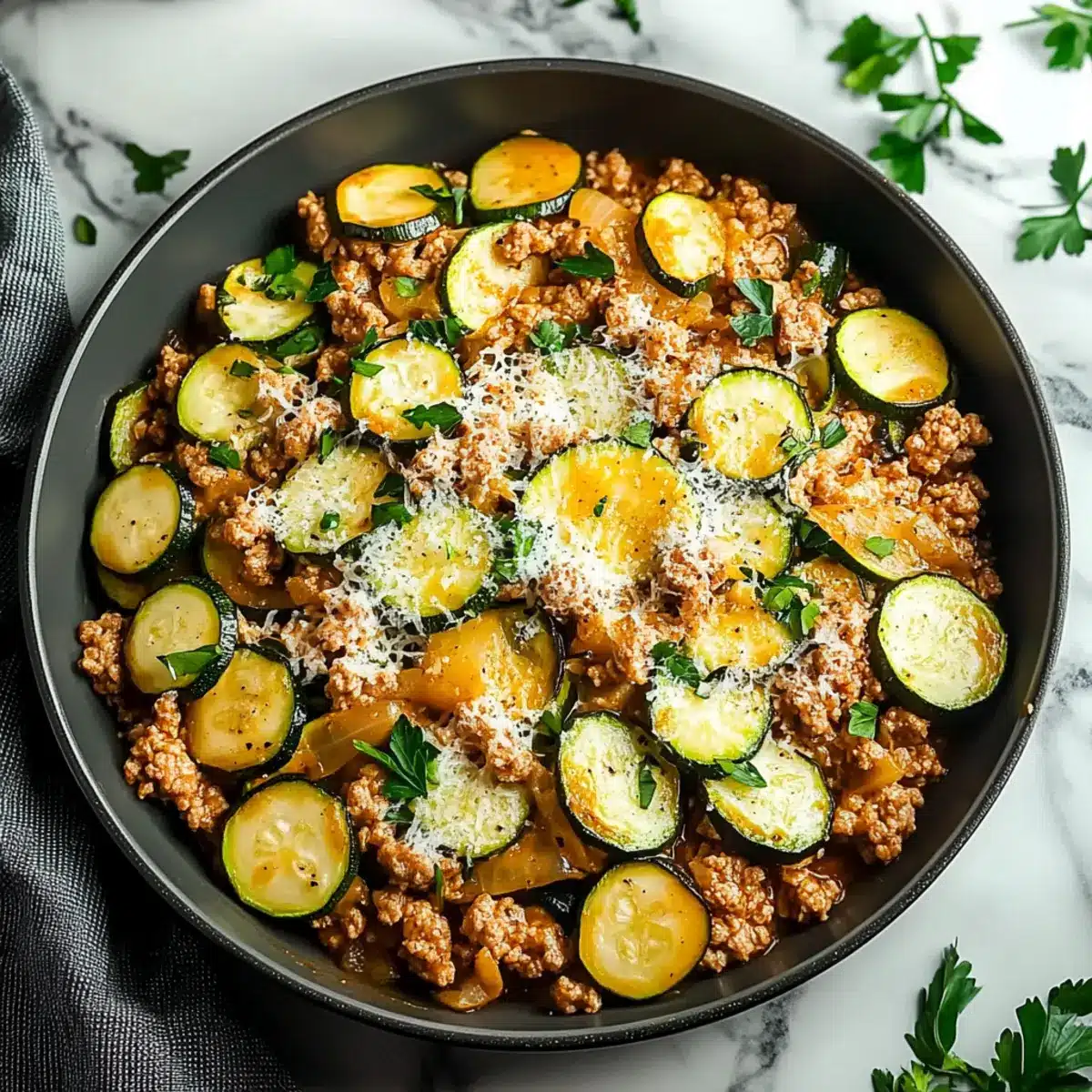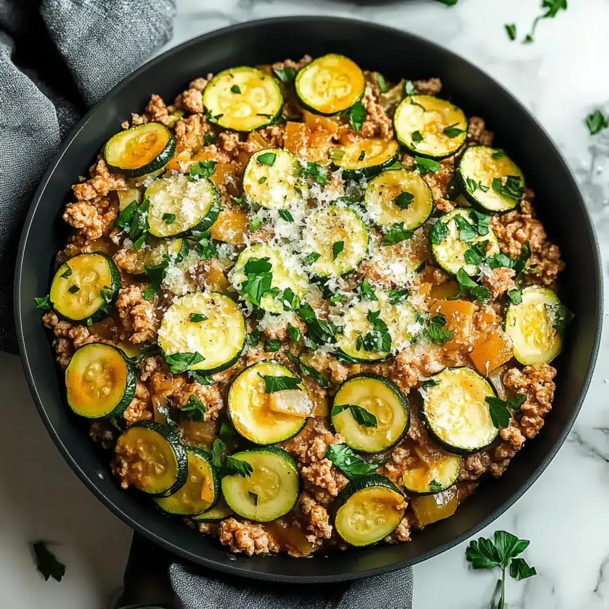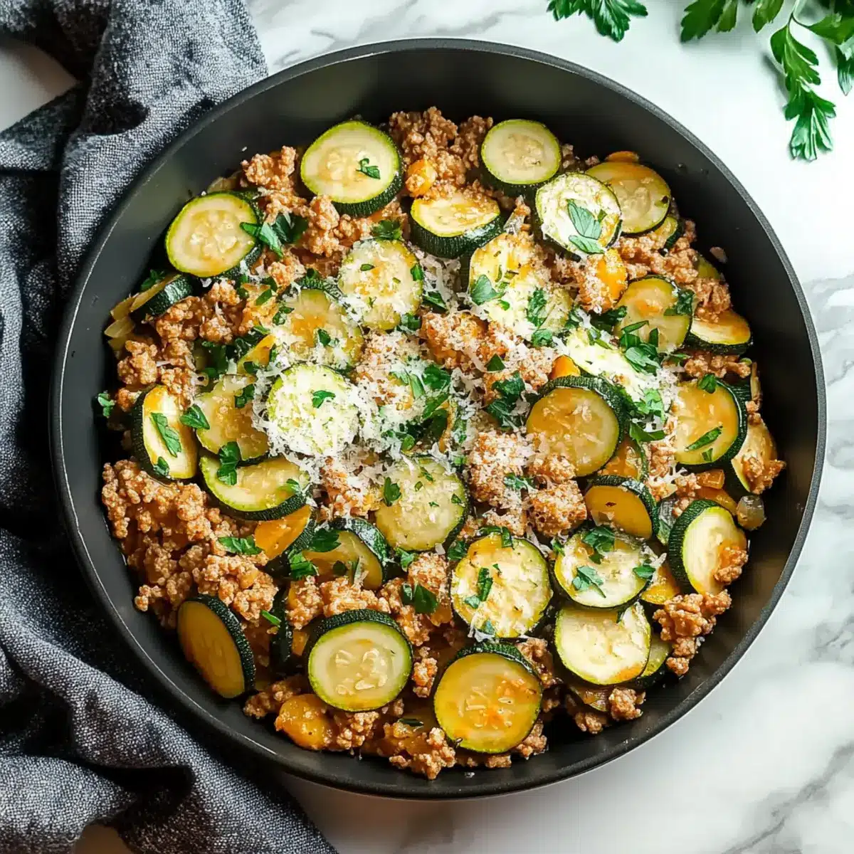 Taste the skillet mixture and adjust the seasoning as necessary. Serve your delicious Ground Turkey and Zucchini Skillet immediately, perhaps garnishing with a bit more Parmesan for added indulgence. Enjoy this wholesome meal fresh from the pan, perfect for a cozy weeknight dinner!