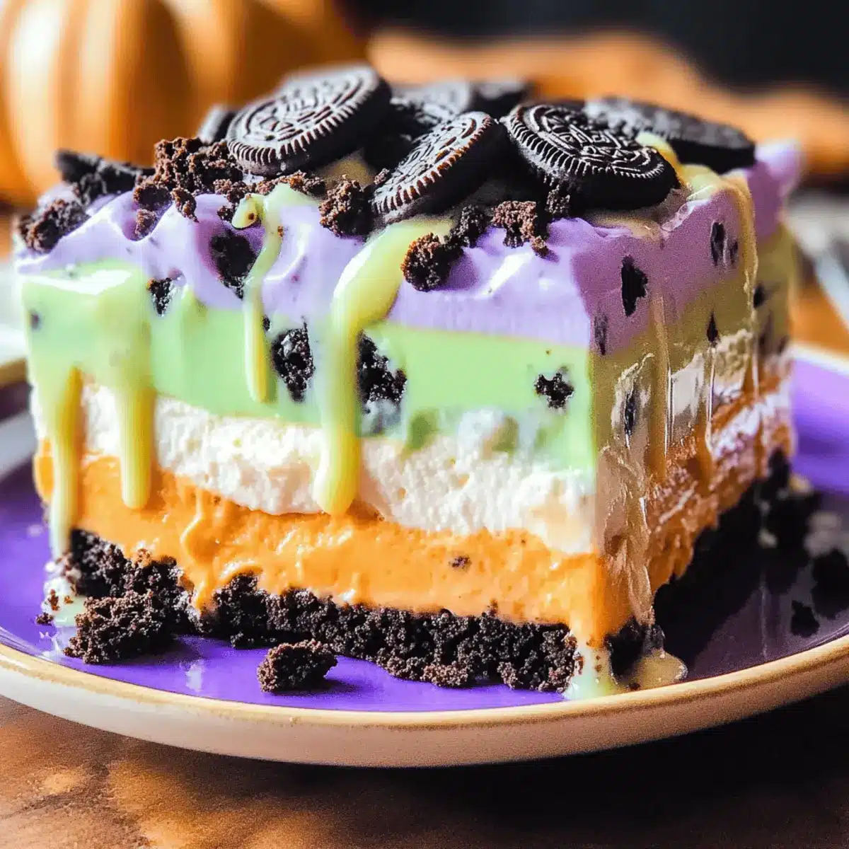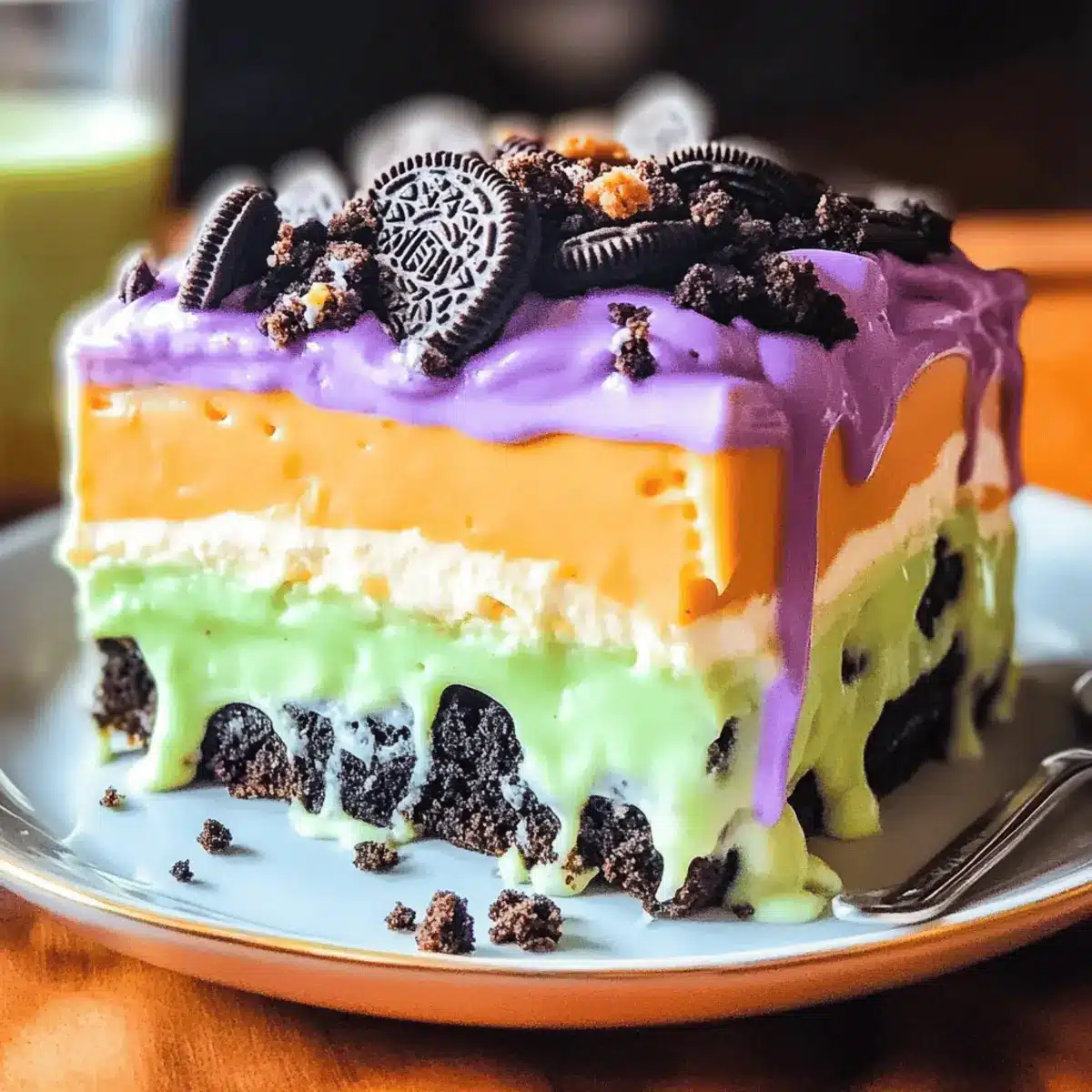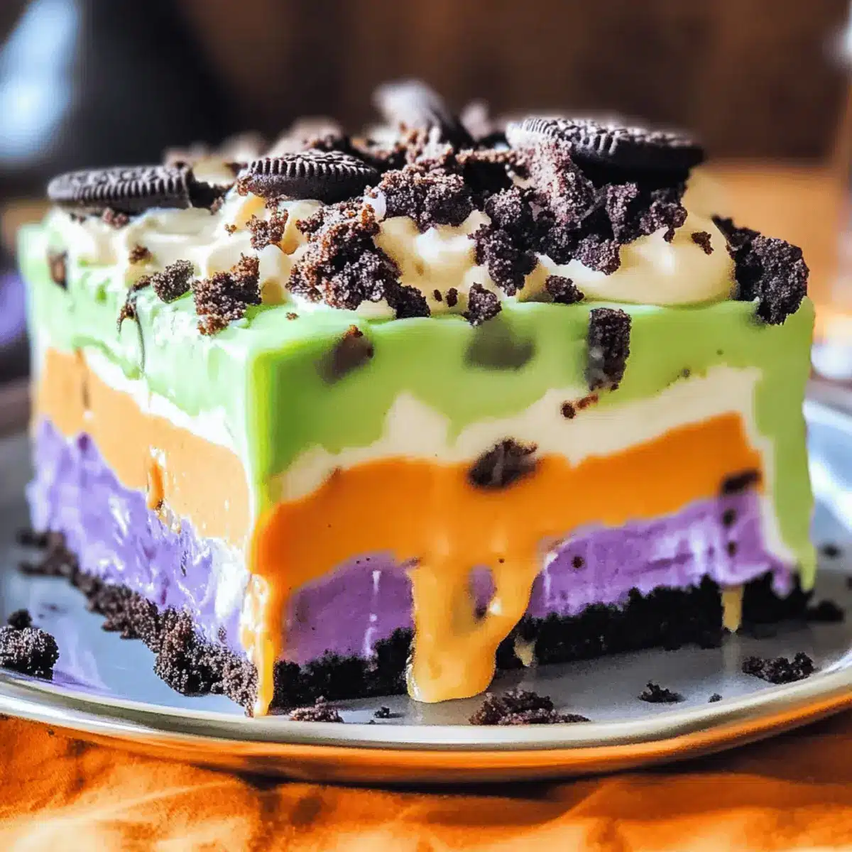 Festively Fun: The colorful layers and playful toppings are sure to impress at any Halloween gathering.