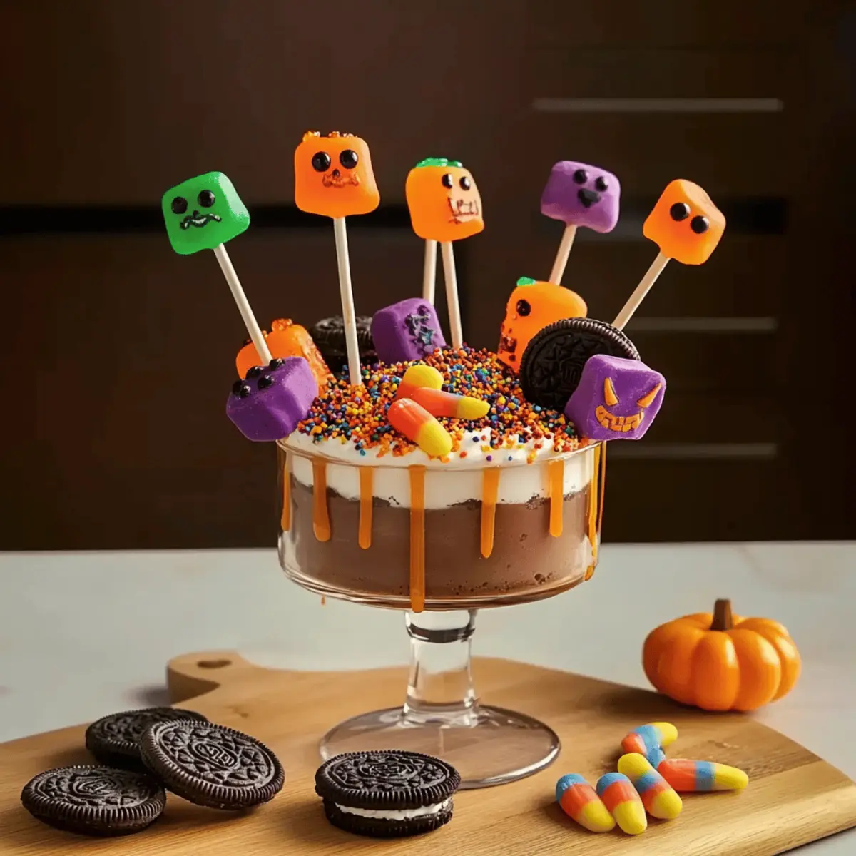 Haunted Cupcakes: Serve cupcakes adorned with Halloween-themed frosting; their light, fluffy texture adds a wonderful contrast to the chewy marshmallow pops.