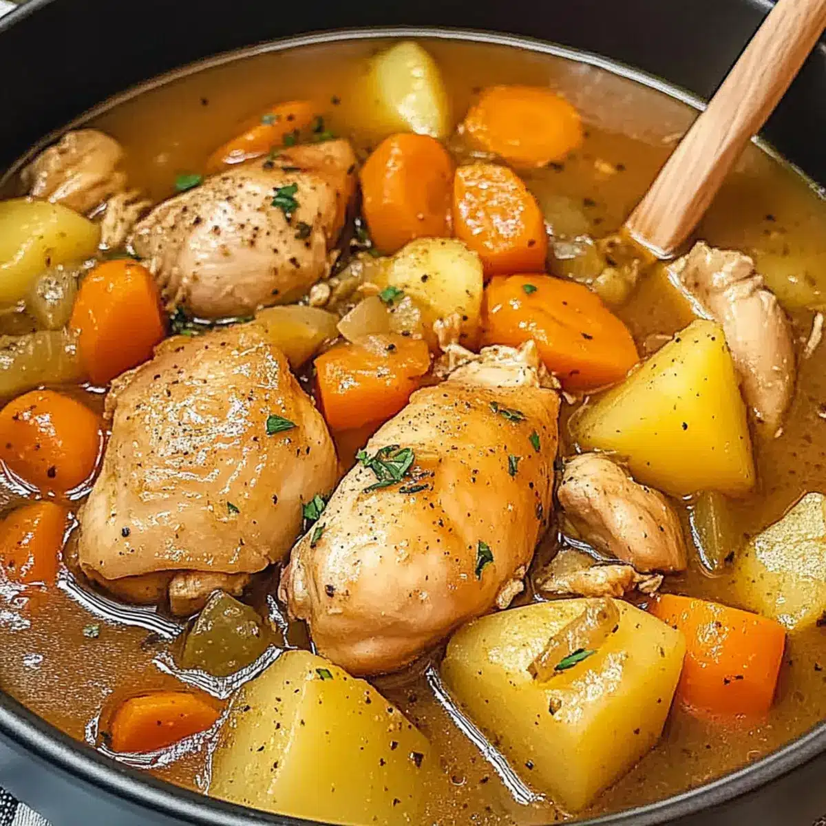 Comforting Warmth: Hearty Chicken Stew wraps you in a cozy embrace, perfect for chilly nights when you crave something nourishing.