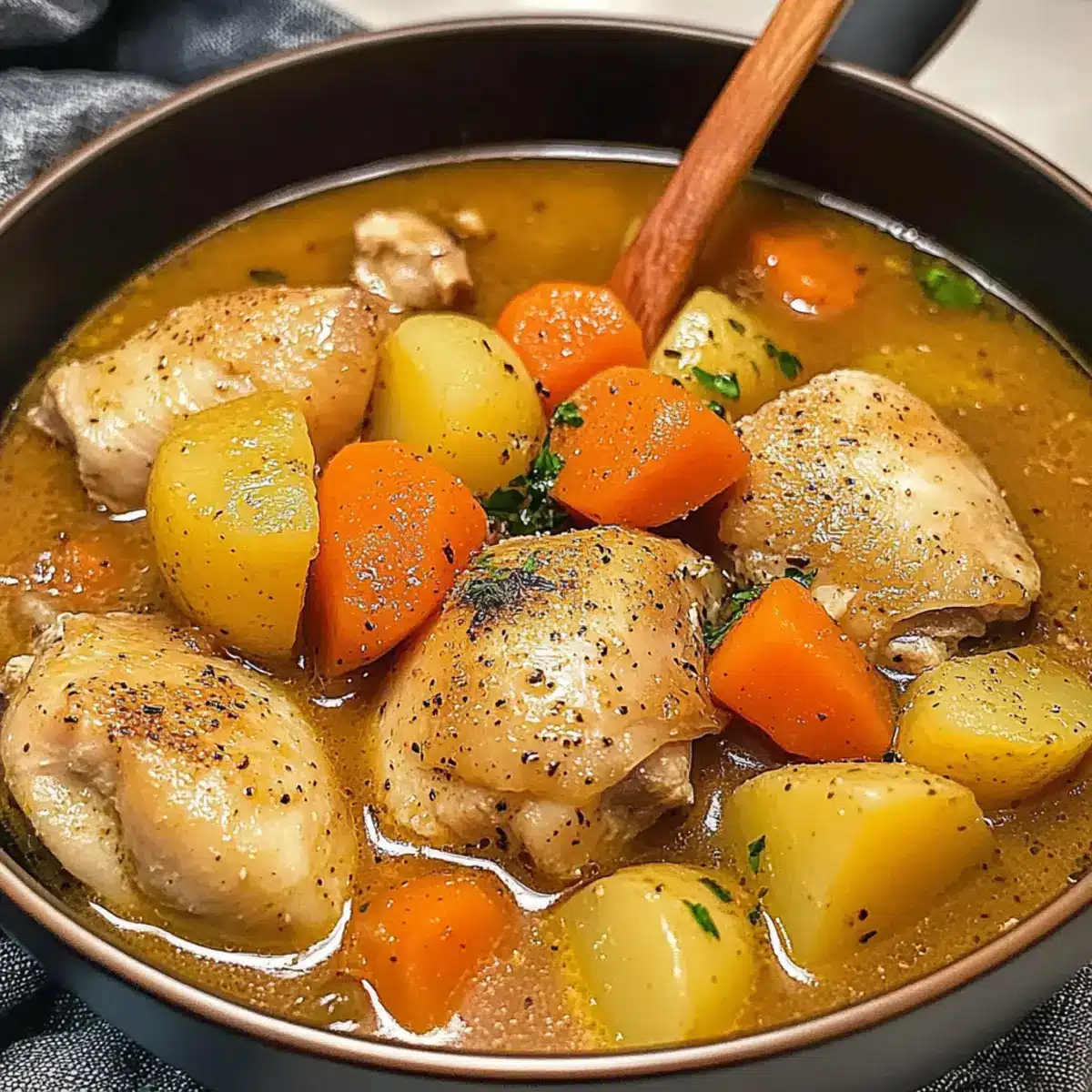 - Chicken Thighs – Provides tender, juicy protein and is perfect for a hearty chicken stew. Substitute with turkey for a lighter option or chickpeas for a vegetarian alternative.