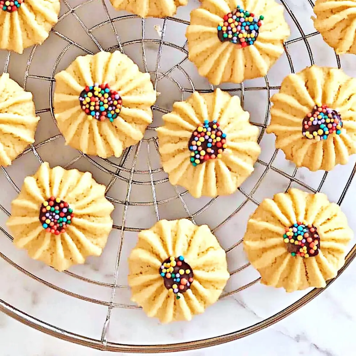 Before baking, sprinkle nonpareil sprinkles or colored sugars atop your piped cookies for a festive touch. This step not only enhances their visual appeal but also adds a delightful crunch to every bite. Feel free to customize with different colors to match any occasion, making your Italian Butter Cookies distinctively yours.