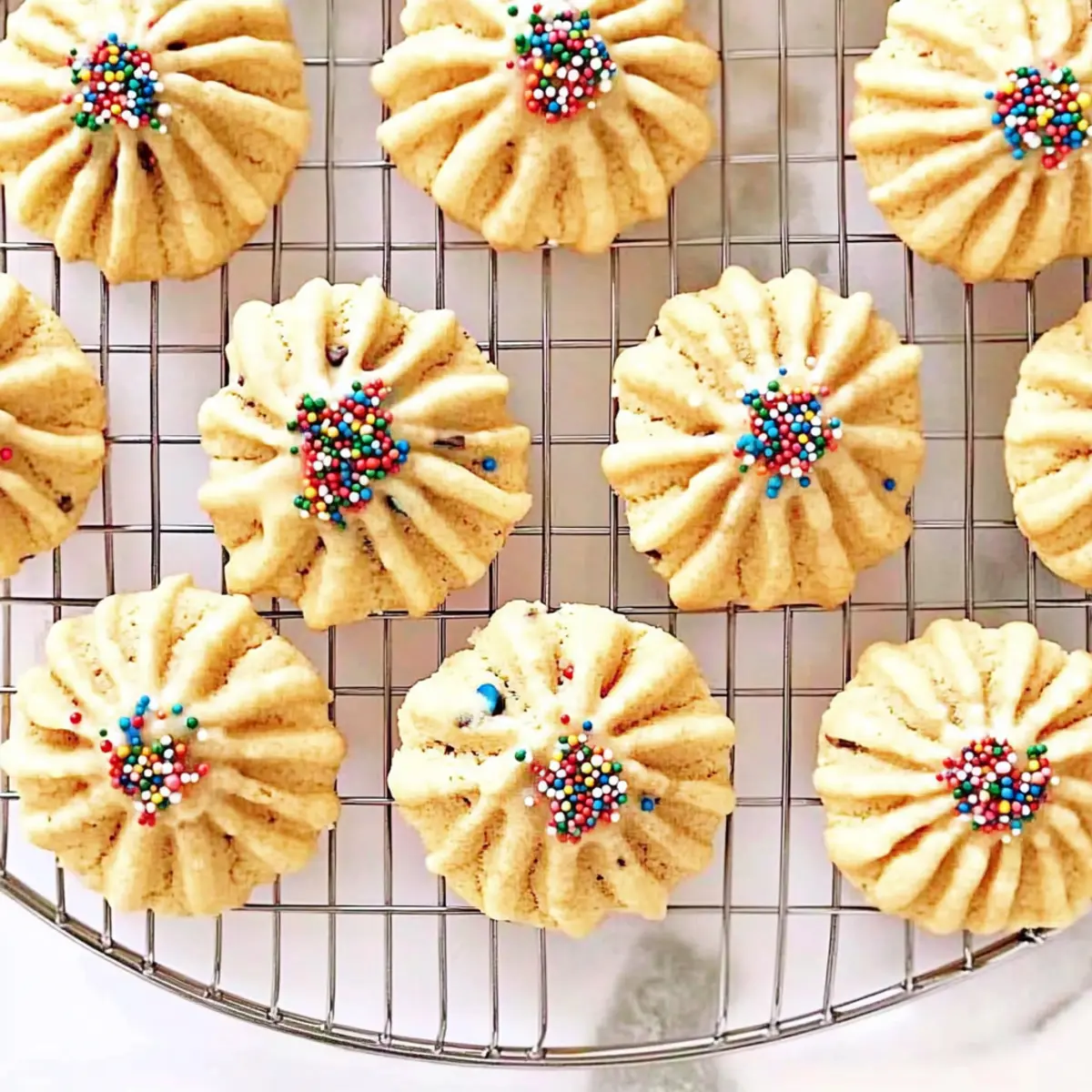 - Sprinkle nonpareil sprinkles or colored sugars on the piped cookies for decoration.