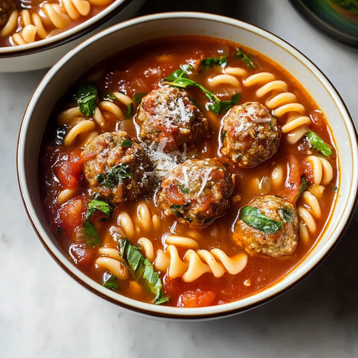 For busy home cooks, this Italian Meatball Soup is perfect for meal prep! You can prepare the soup base (excluding the pasta) up to 3 days in advance. Simply sauté the onions and garlic, add the crushed tomatoes, broth, and meatballs, then let it cool before refrigerating. To prevent browning and maintain flavor, store it in an airtight container. When you’re ready to serve, heat the soup on the stovetop until hot, then add the uncooked fusilli pasta and simmer for about 15 minutes until the pasta is al dente. This way, you’ll enjoy a comforting and delicious Italian Meatball Soup with minimal effort on a busy weeknight!
