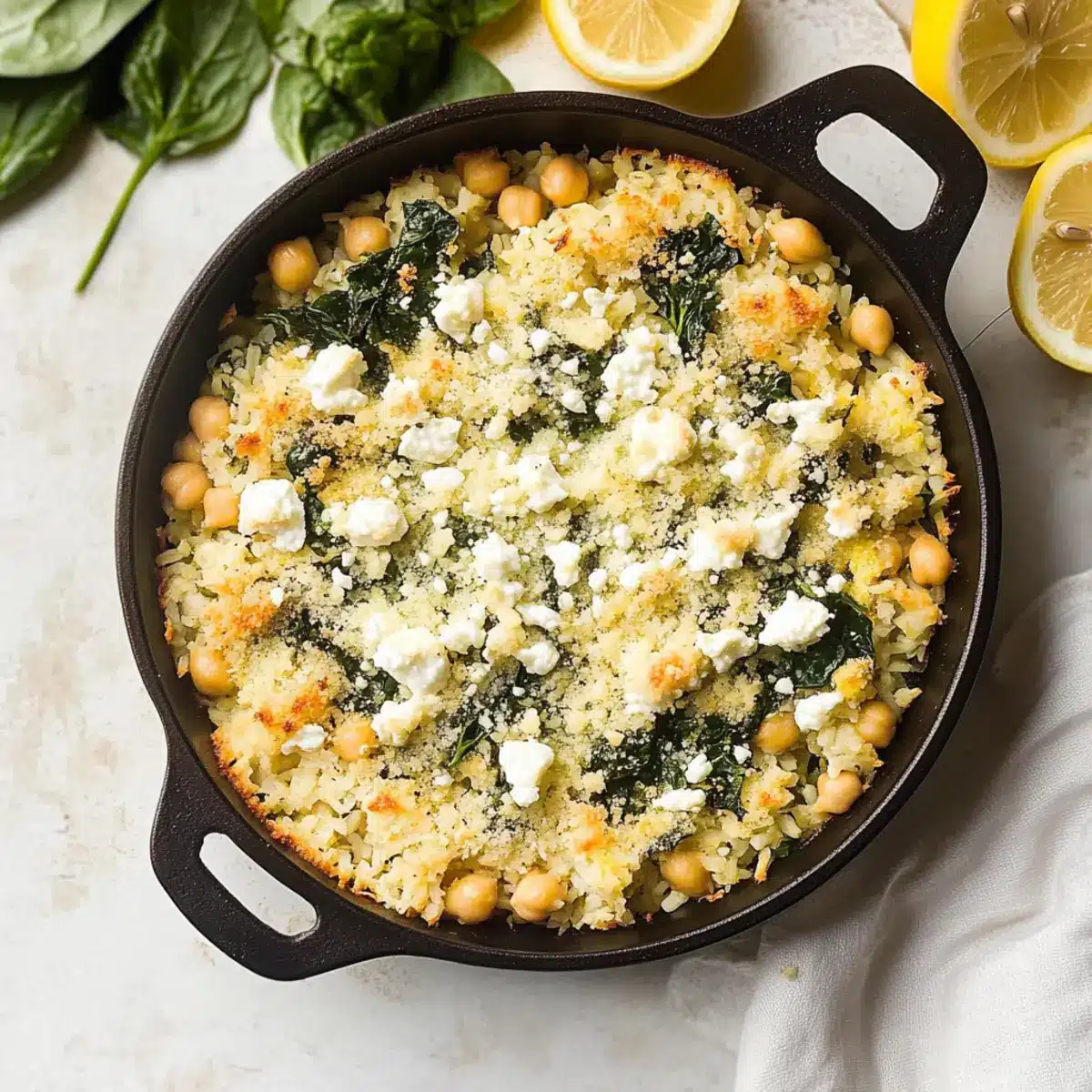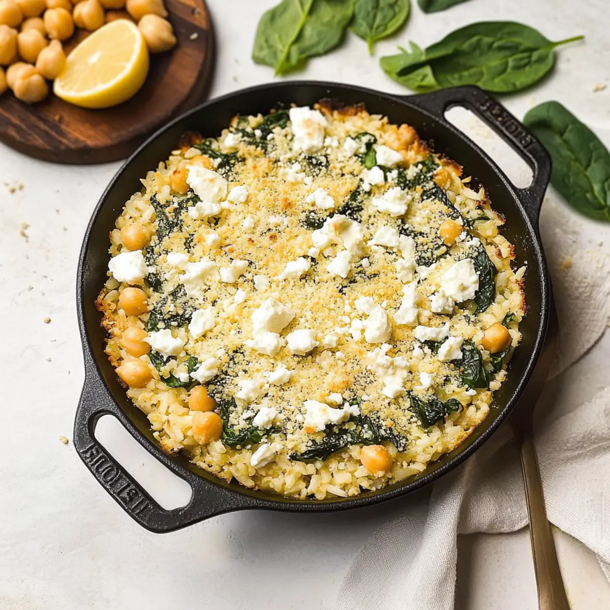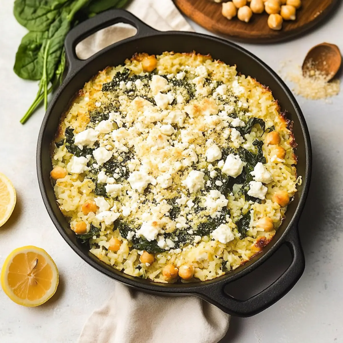 Lemony Spinach Feta Rice Casserole with Chickpeas Bliss