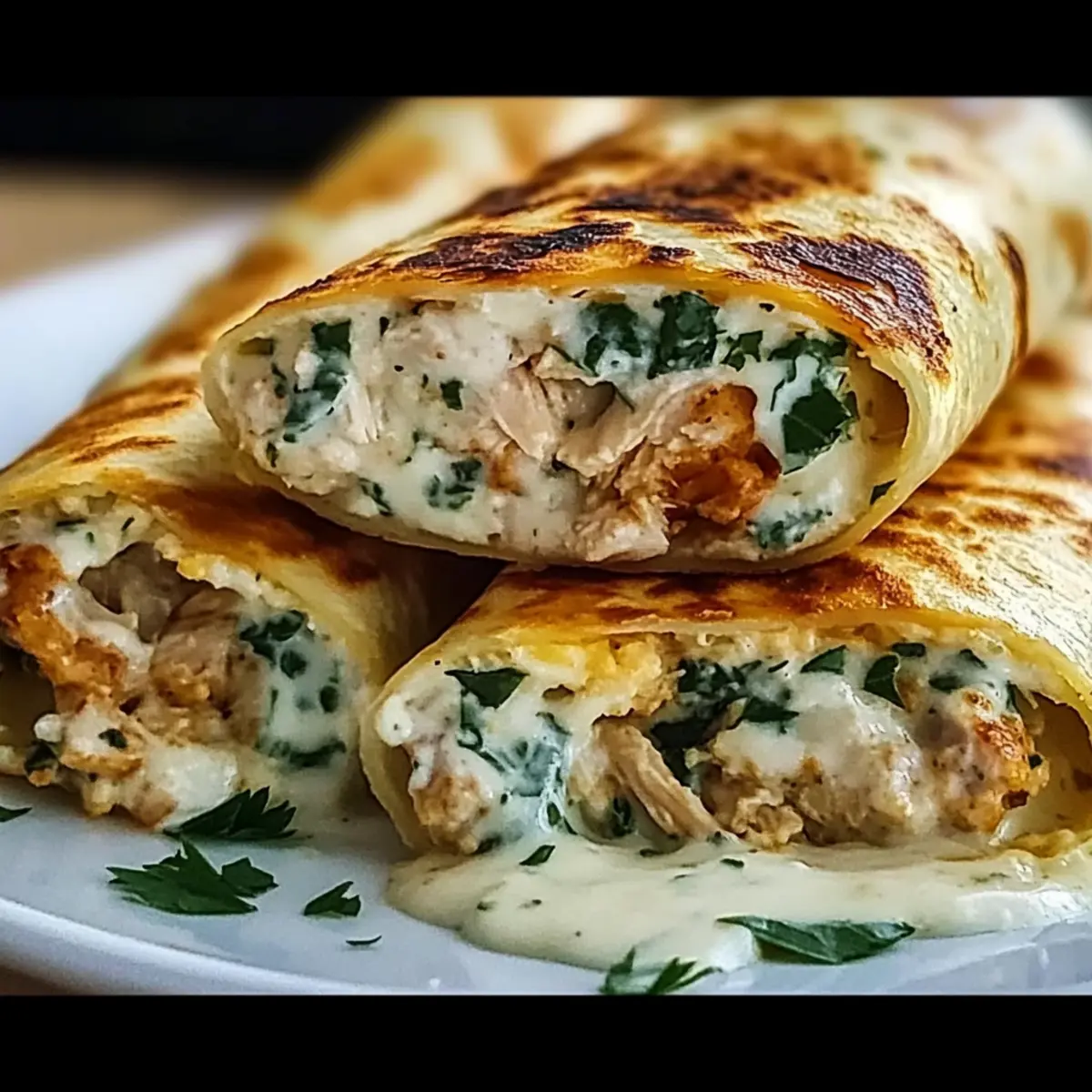 Sour Cream Drizzle: Serve with a drizzle of garlic herb yogurt or sour cream to add a creamy contrast to the warm, cheesy wraps. It’s a zingy touch that enhances every mouthful.
