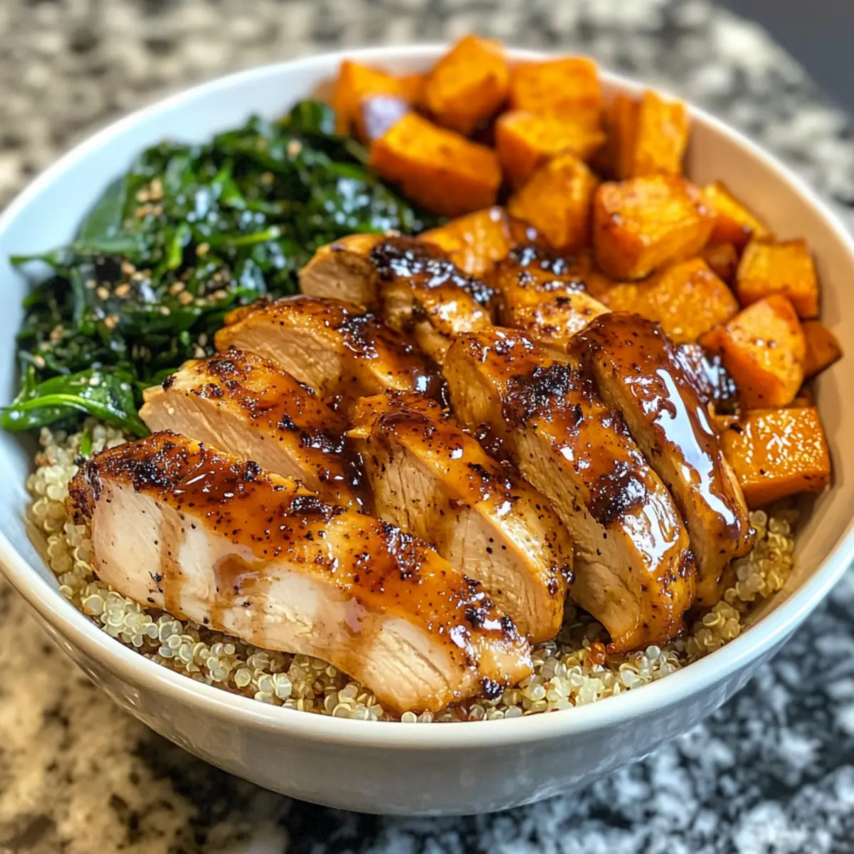 Comforting, Hearty Meal: These bowls bring together delicious, tender chicken and creamy roasted sweet potatoes, creating a cozy dish perfect for family gatherings.