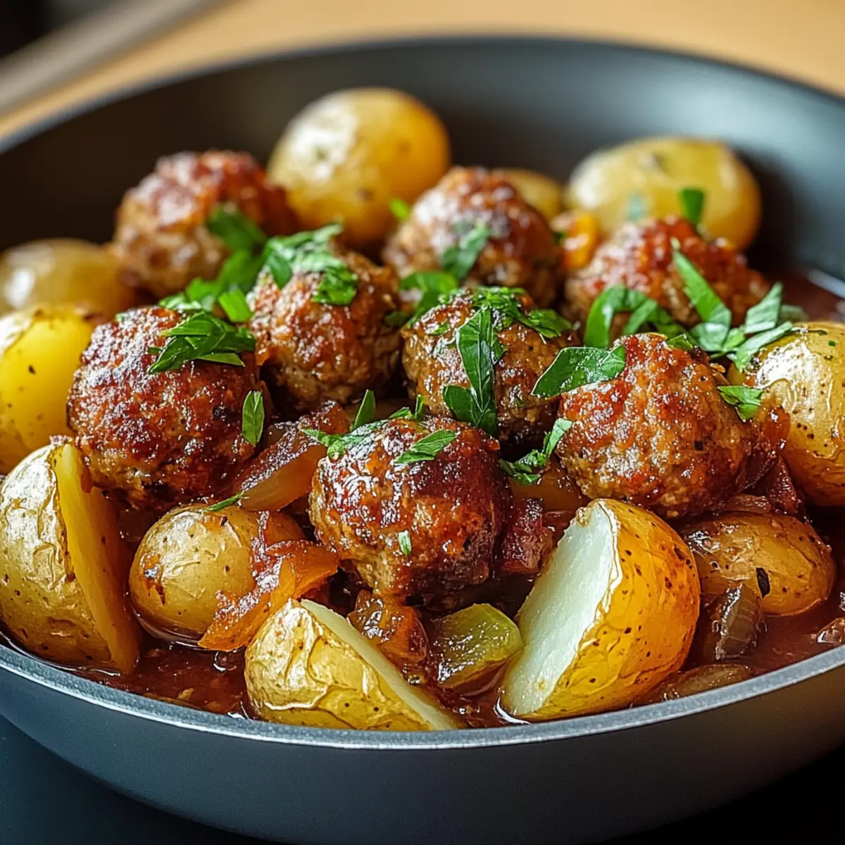 Comforting meatballs paired with crispy potatoes make for a satisfying meal that feels like home. Quick and easy, this dish is ideal for busy weeknights or casual dinner parties. Customizable to suit your taste, switch up the spices or add extra veggies like bell peppers for a nutrition boost. Budget-friendly ingredients ensure you can whip it up without breaking the bank. Plus, the flavors meld wonderfully, making this a crowd-pleaser at any gathering. Don’t forget to serve it alongside a fresh salad or some creamy dips for a delightful complete meal!