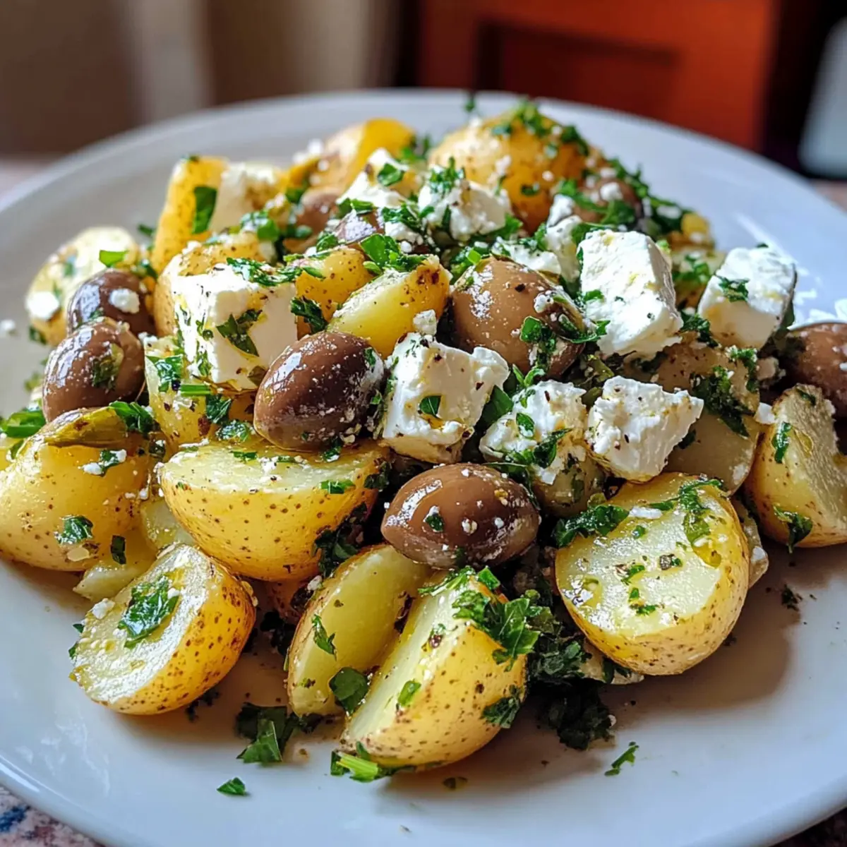 - In a large bowl, combine the cooled potatoes, olives, feta, parsley, and dill. Gently fold together.