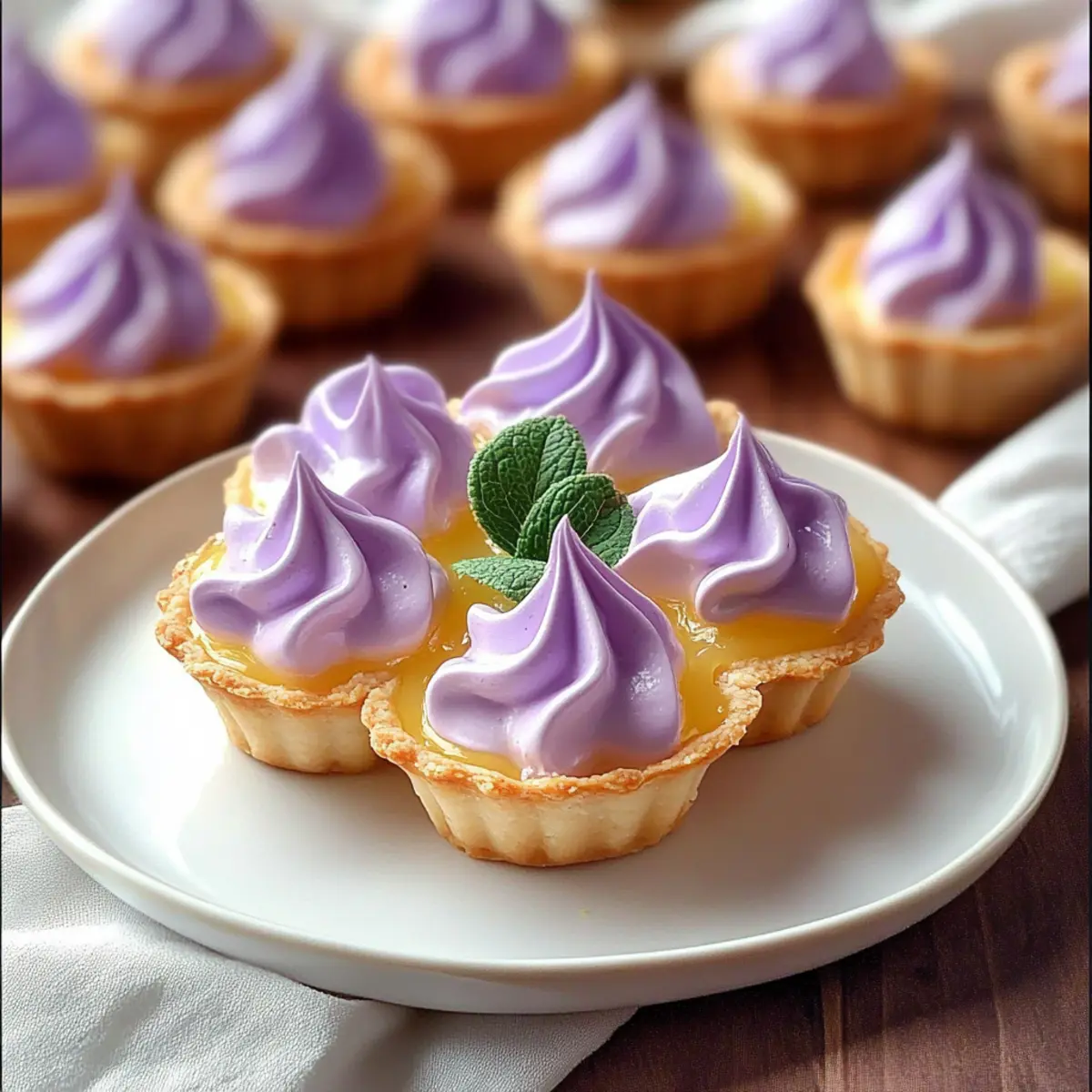 Whimsical Presentation: Topped with fluffy lilac meringue, these tarts not only taste divine but are a feast for the eyes, perfect for impressing guests.