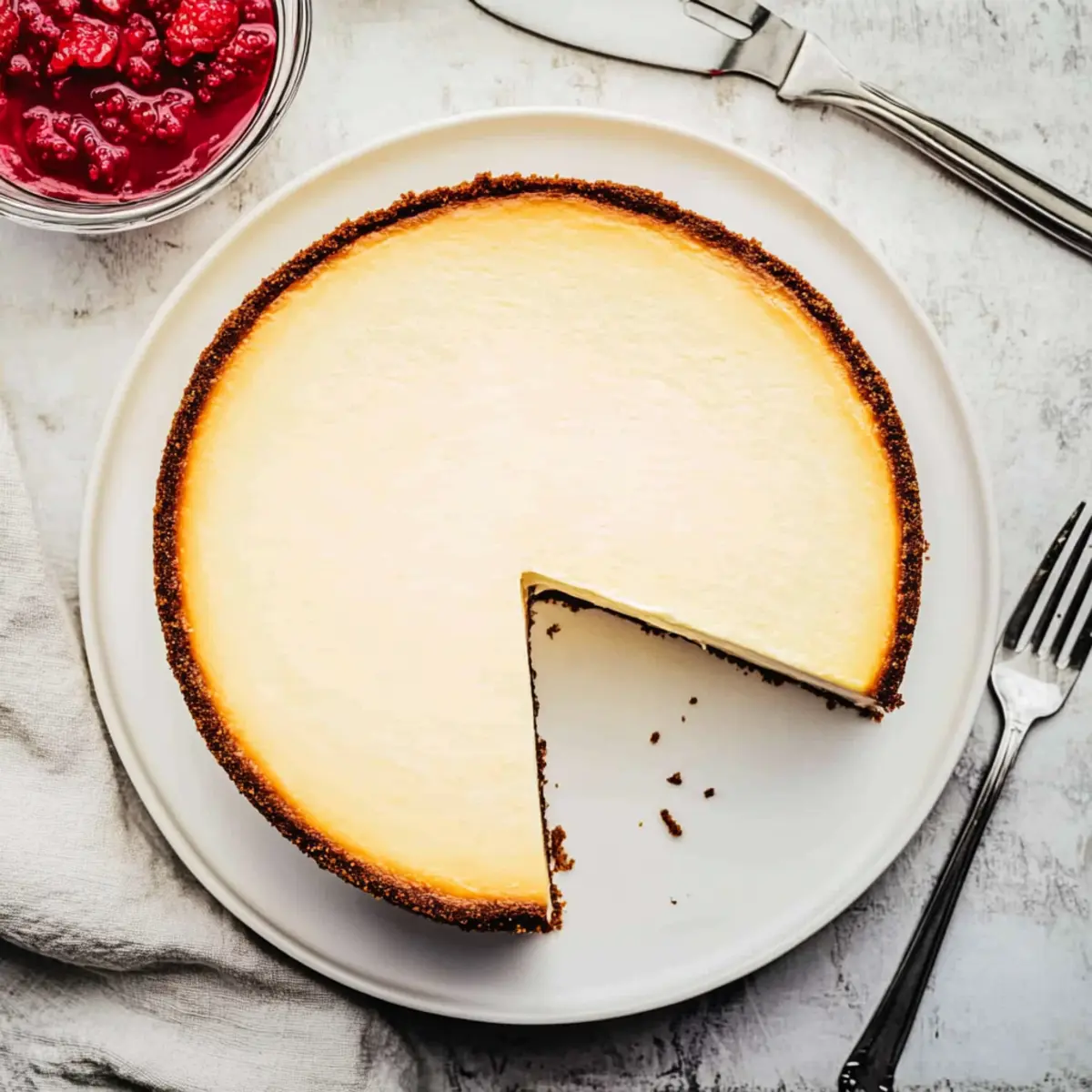 Very common! If your cheesecake cracks, it could be due to overmixing or rapid temperature changes. To troubleshoot, ensure you mix the batter on low speed once the eggs are added, and don’t overmix. The water bath helps prevent cracks by providing a moist environment, so don’t skip that step! If it does crack, you can cover it with a sauce or fresh fruit to make it look beautiful just the same!