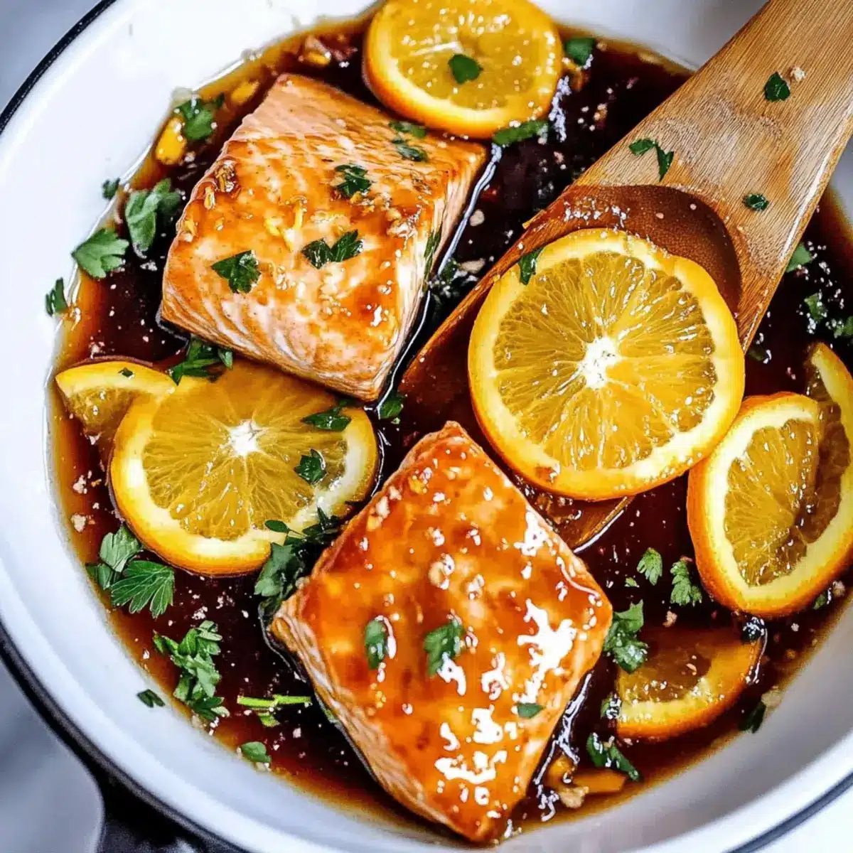 Return the salmon fillets to the skillet with the orange glaze. Spoon the sauce over the top, ensuring each piece is well coated. If you’d like, add a few slices of fresh orange for a beautiful presentation and an extra burst of flavor, cooking for just a minute more to warm them through.