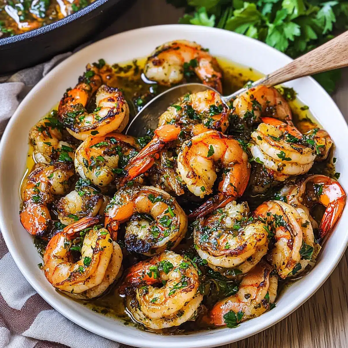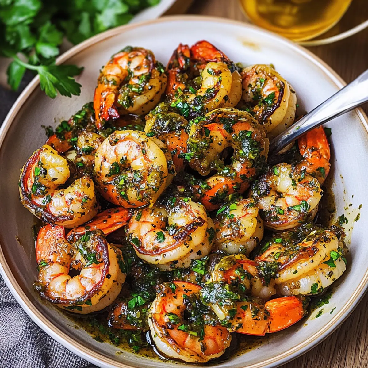 - Transfer shrimp to a serving dish, drizzle with chimichurri sauce, toss gently, and serve with extra chimichurri.