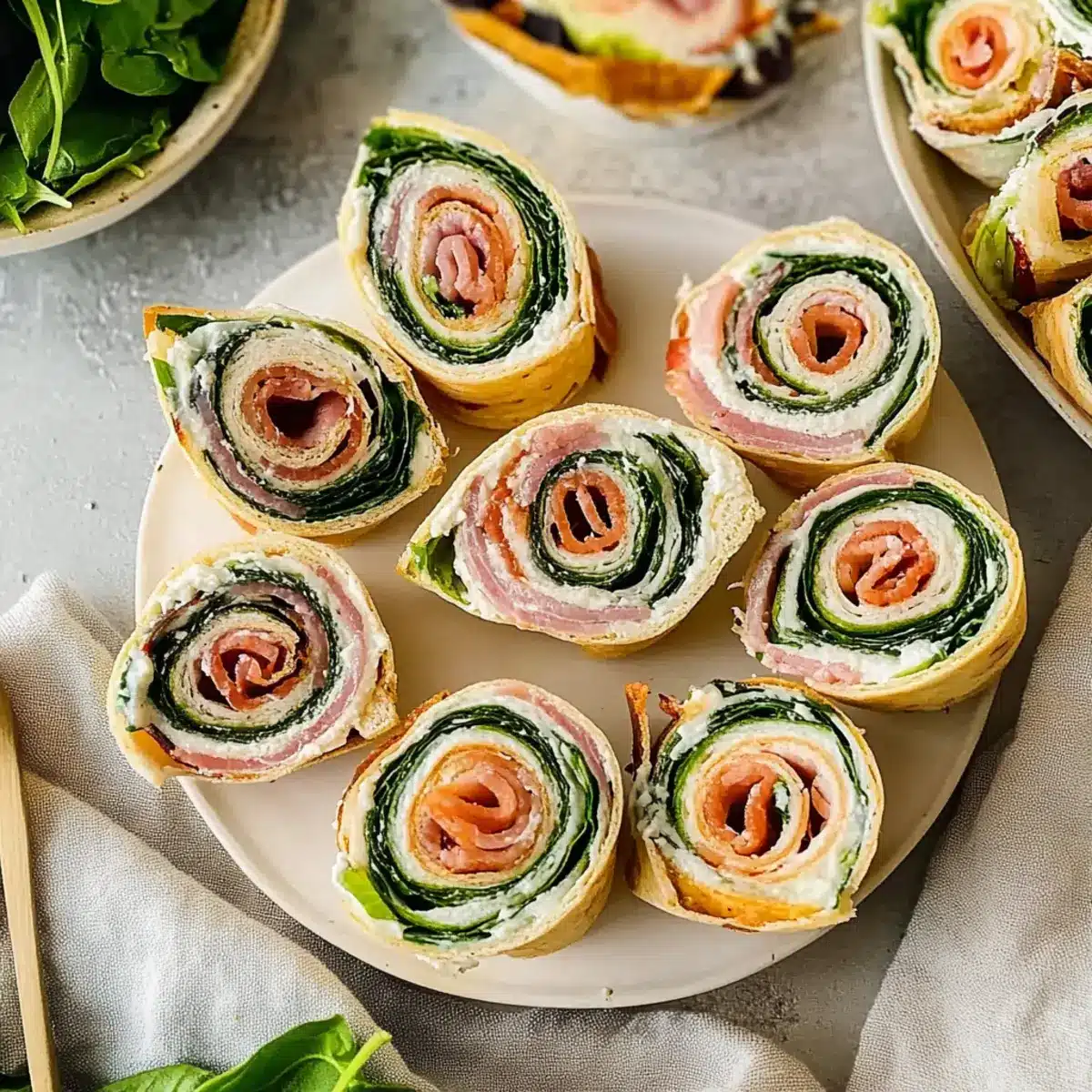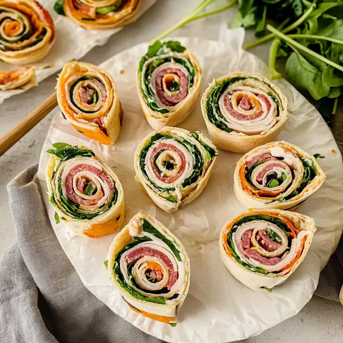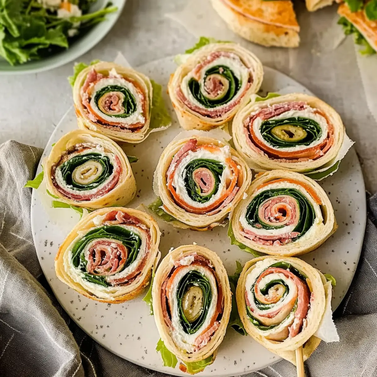 Colorful Layers: For visually appealing pinwheels, alternate the layering of ingredients. Think vibrant colors—fresh greens, bright meats, and creamy textures to entice your guests!