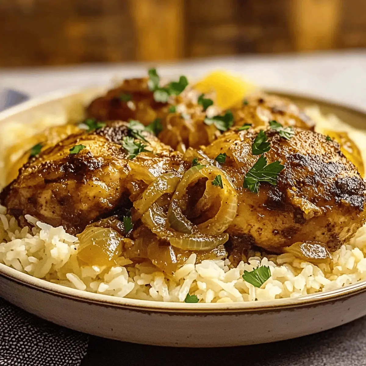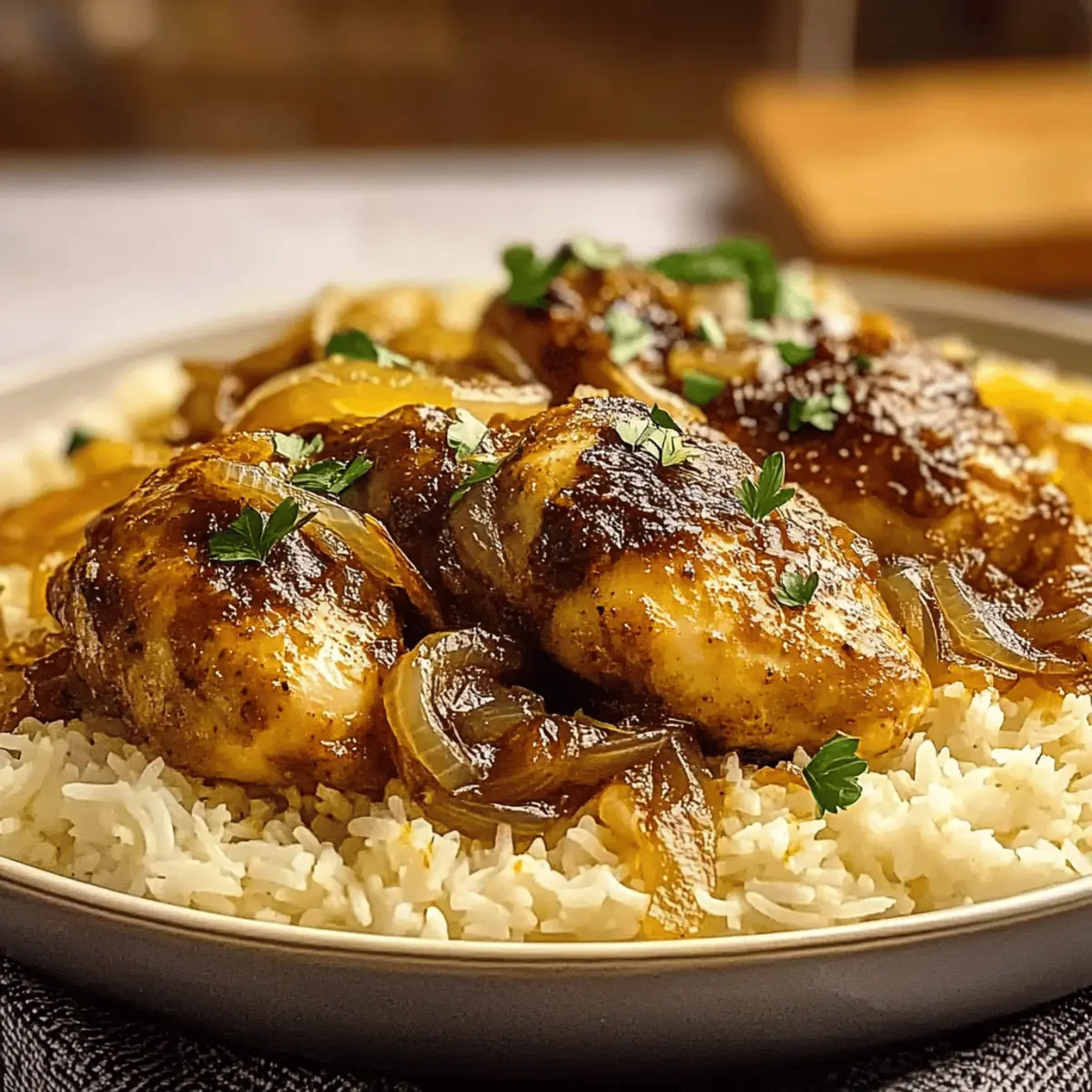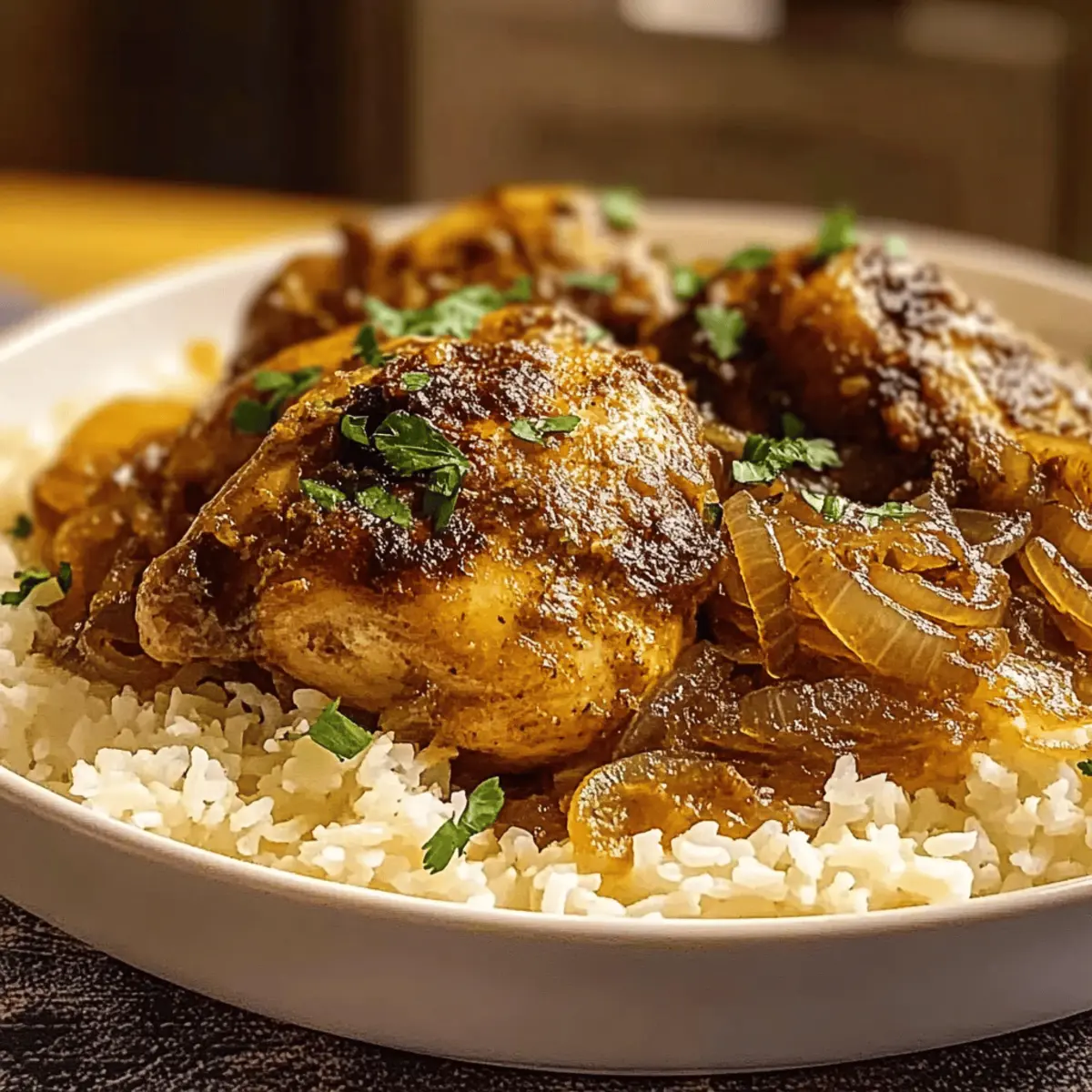 Comforting Texture: Picture tender, fall-apart chicken surrounded by caramelized onions—a heartwarming dish perfect for any dinner gathering.