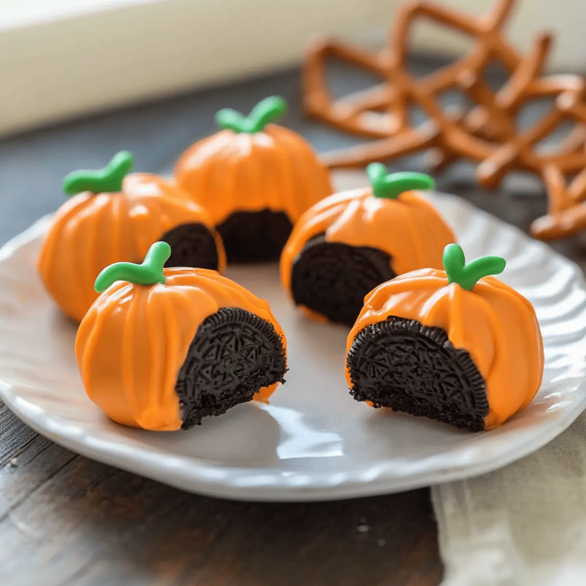 • Mini Pretzel Sticks – Add these on top to resemble pumpkin stems for a fun fall touch.