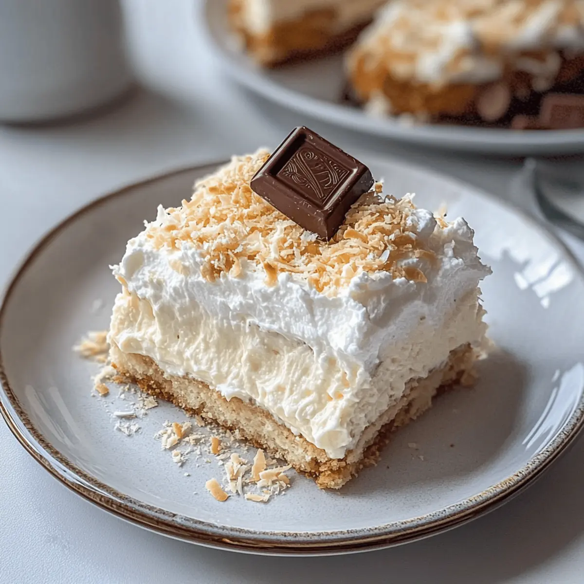 - Slice the chilled dessert and serve, adding more coconut flakes if desired.