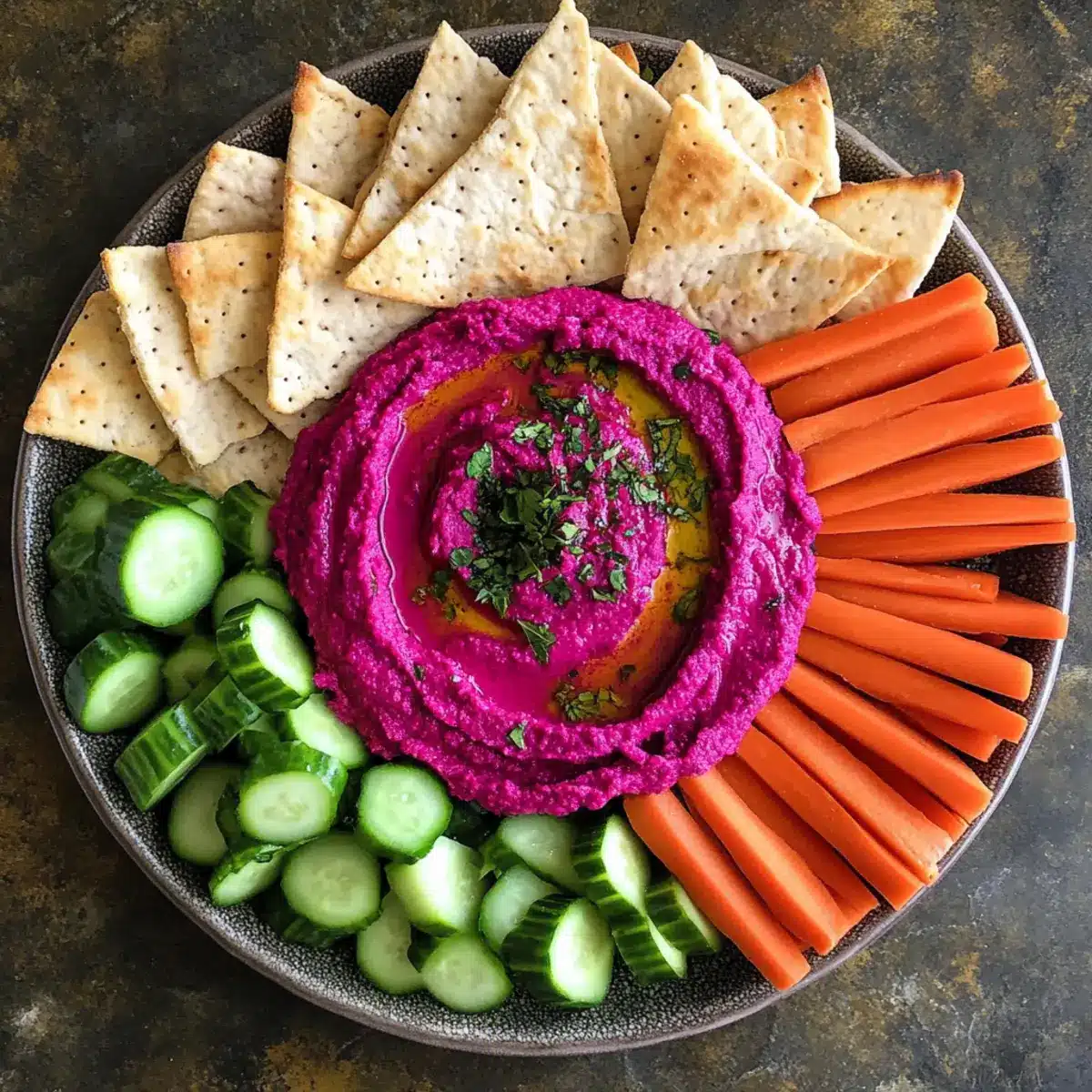 Colorful Roasted Beet Hummus Platter for Vibrant Snacking