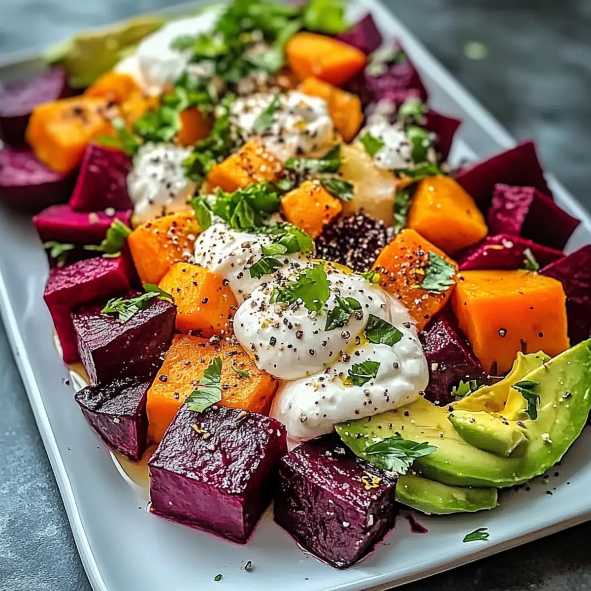 Colorful Roasted Beet, Sweet Potato & Avocado Salad Delight