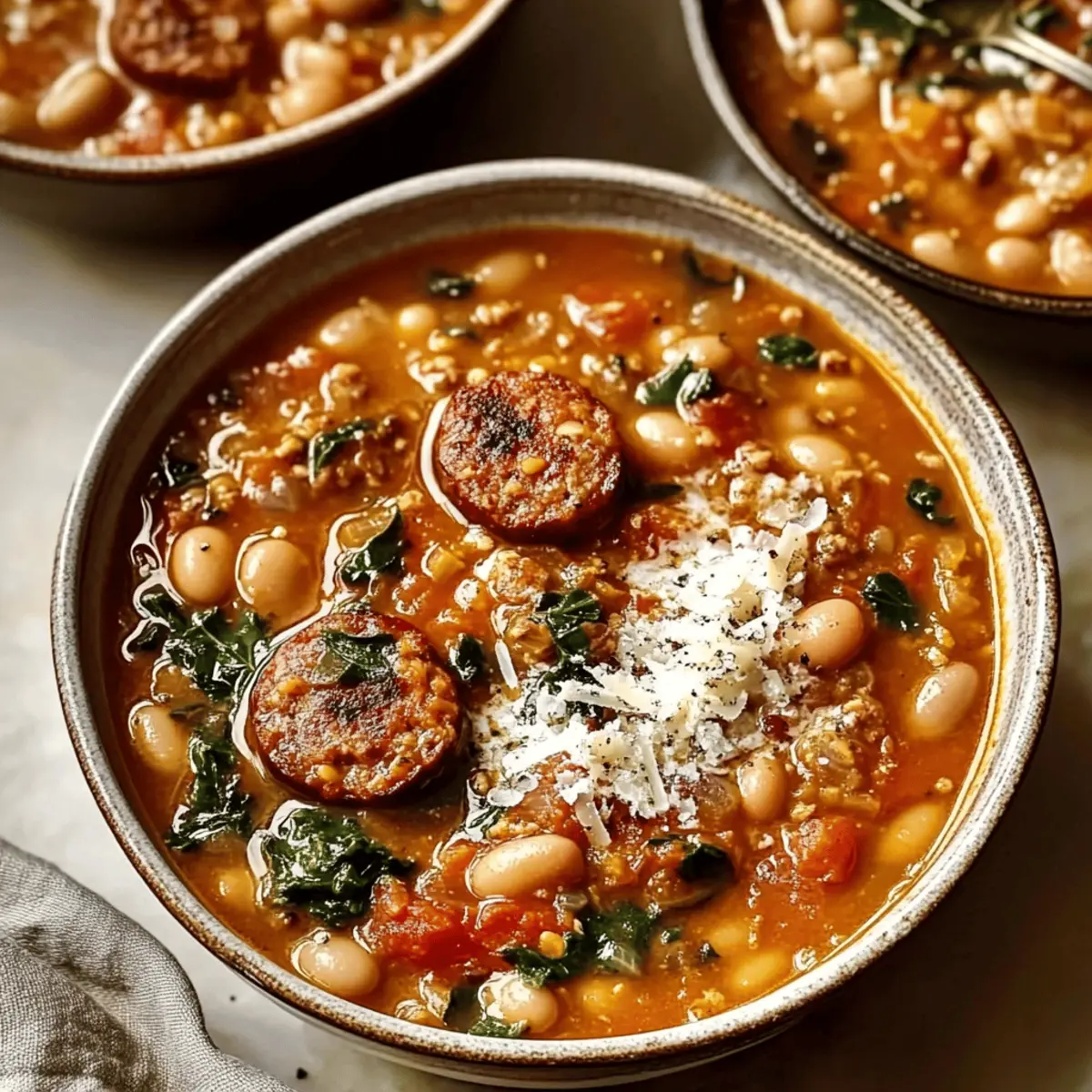Ladle the steaming Sausage Bean Soup into bowls, garnishing with freshly grated Parmesan cheese if desired. Pair with crusty bread for dipping, enhancing your dining experience. Enjoy the rich flavors and hearty texture as you indulge in each satisfying spoonful of this delicious comfort food.