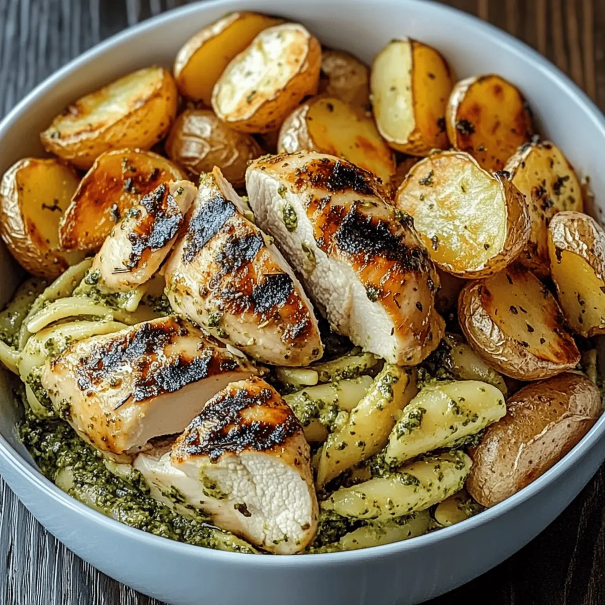 To plate, serve a generous portion of creamy pesto pasta alongside the crispy roasted potatoes. Top with the sliced grilled chicken, and garnish with extra Parmesan cheese and fresh herbs for a vibrant finish. Dive into your Savor Loaded Herb Grilled Chicken with Creamy Pesto Pasta, and enjoy every rich and flavorful bite!