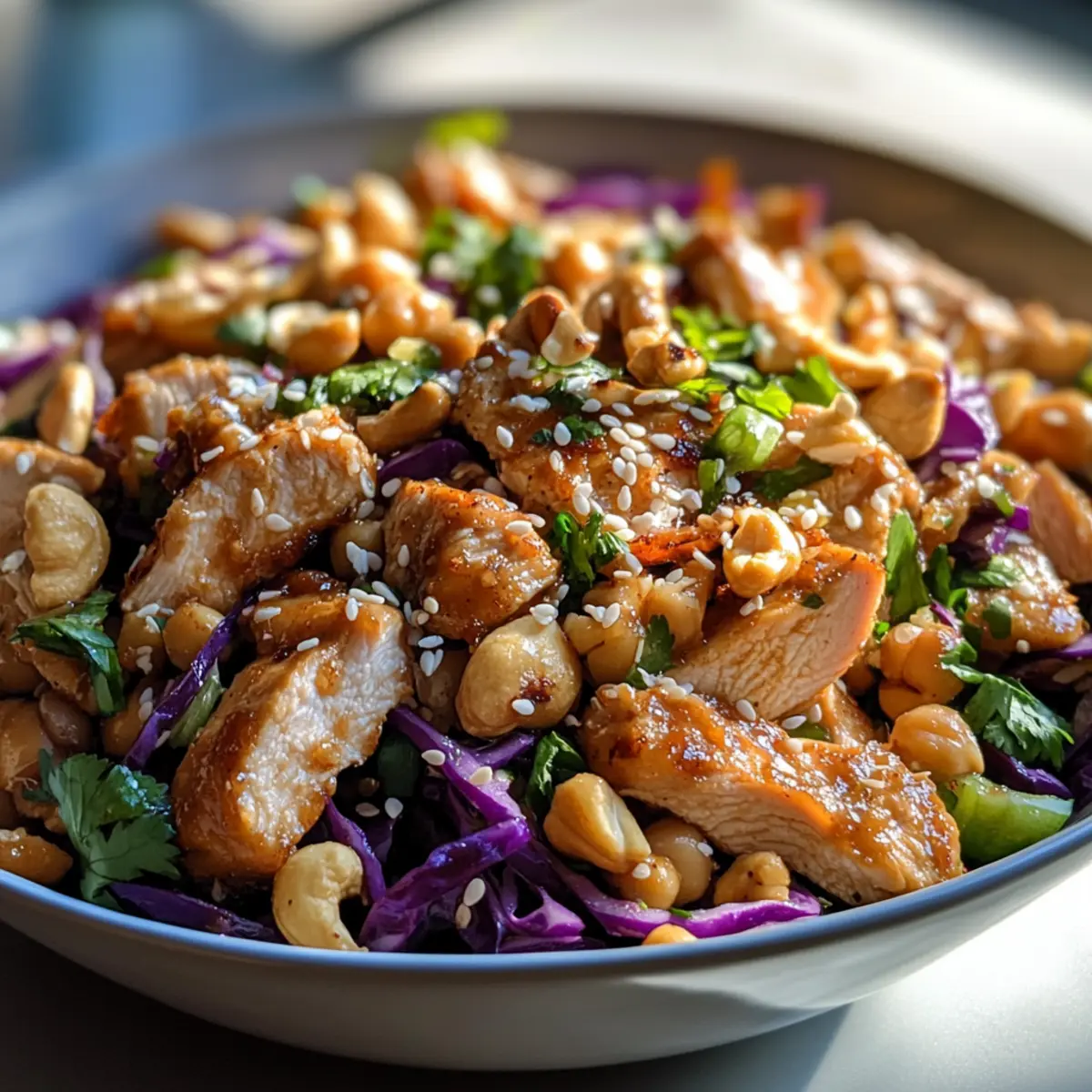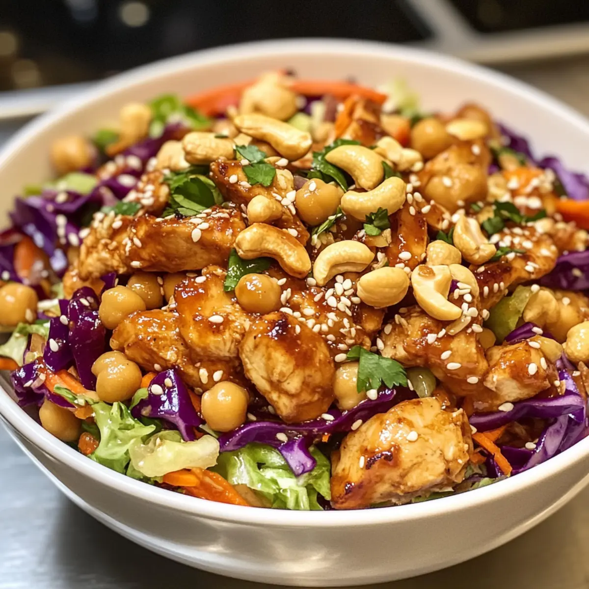 Definitely! This salad contains common allergens, such as chicken and cashews. For nut allergies, a great alternative is to swap cashews for sunflower seeds. Additionally, you can substitute honey with agave syrup for a vegan-friendly option. Always check labels on packaged ingredients to ensure they meet your dietary needs.