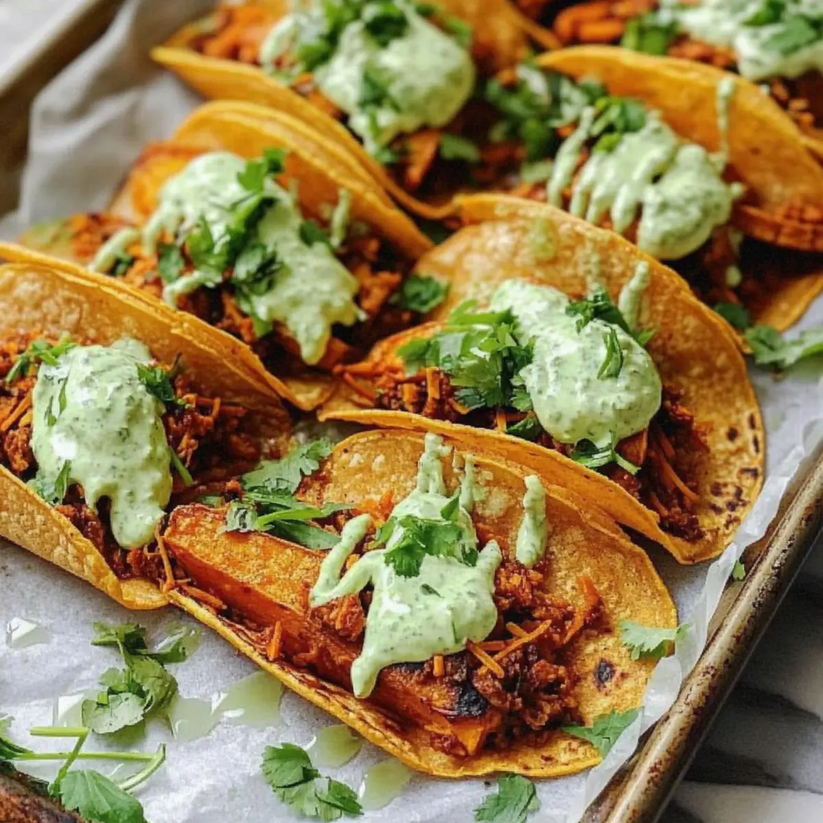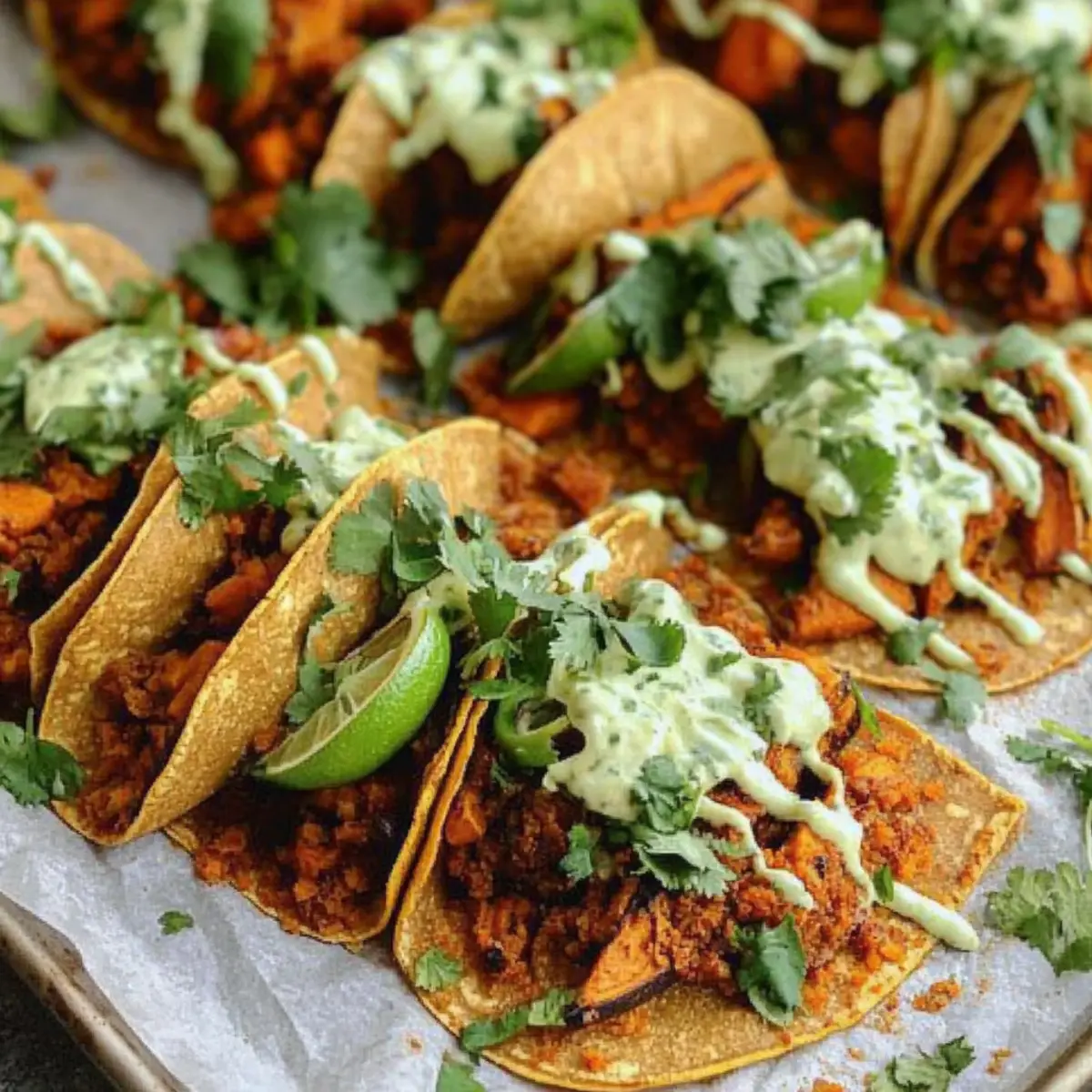 As I pulled the sweet potatoes from the oven, the warm, caramelized aroma wrapped around me like a cozy blanket. These Sheet Pan Sweet Potato Tacos with Chili Lime Crema have quickly become my go-to for busy weeknights. In just 30 minutes, you can create a delightful meal that’s not only vegetarian but also easily customizable for everyone at the table. The best part? They’re a vibrant, healthy alternative to those drive-thru meals we sometimes rely on. With crispy tortillas and a zesty, creamy drizzle that adds a burst of flavor, these tacos transform everyday ingredients into something truly special. Ready to spice things up in your kitchen tonight? Let’s dive into this delicious recipe together!