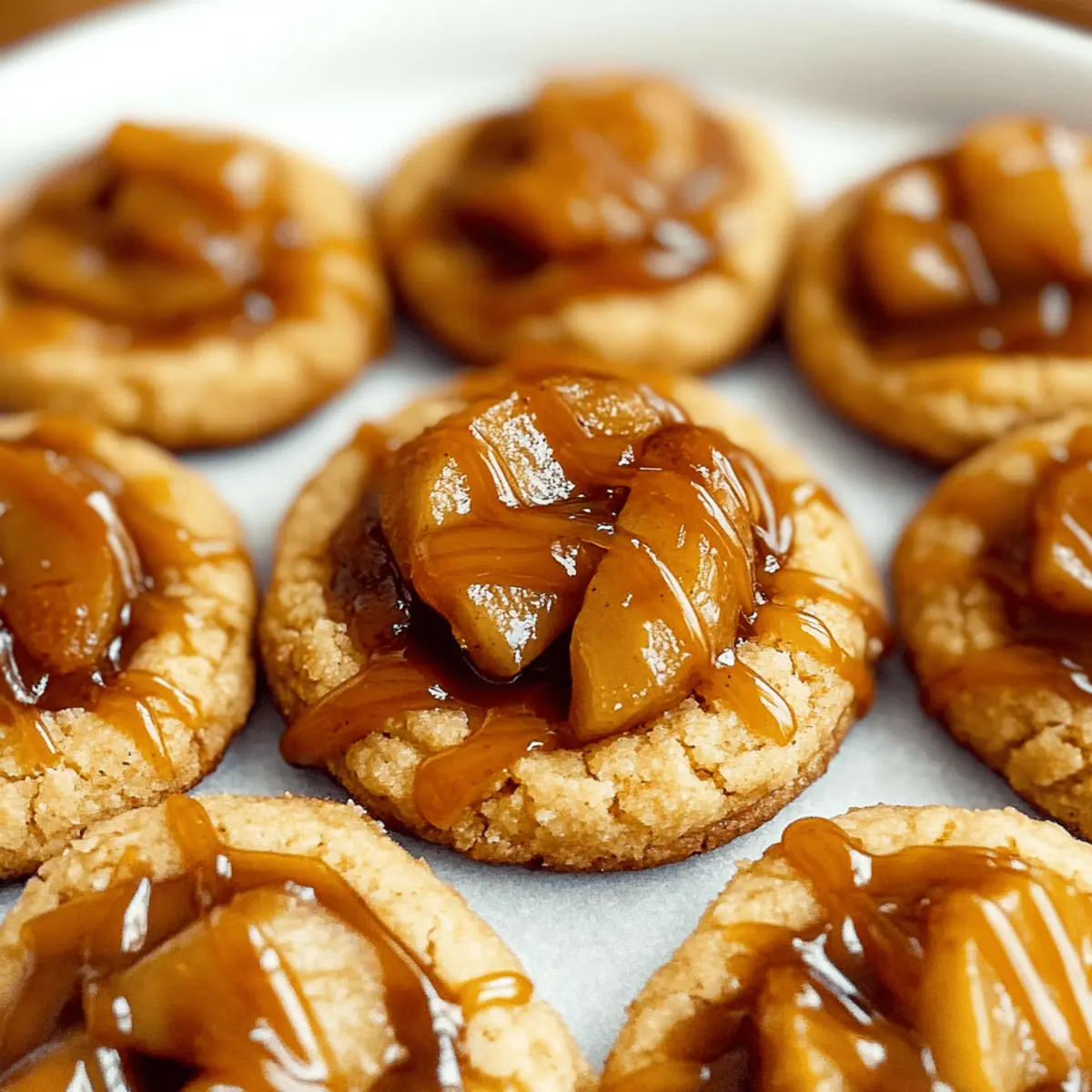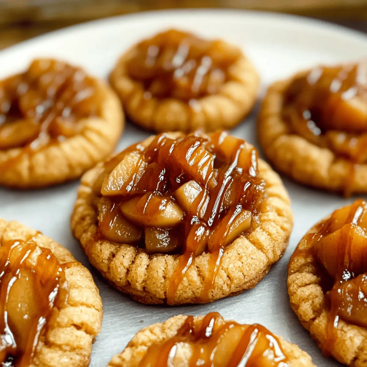 - Allow the cookies to cool on the baking sheet for a few minutes, then transfer them to a wire rack to cool completely. Once cooled, fill each thumbprint indentation with about 1 tablespoon of the cooled apple pie filling. Finally, drizzle with warm caramel sauce for that perfect touch of sweetness. Serve and admire your beautiful Soft Apple Pie Cookies!
