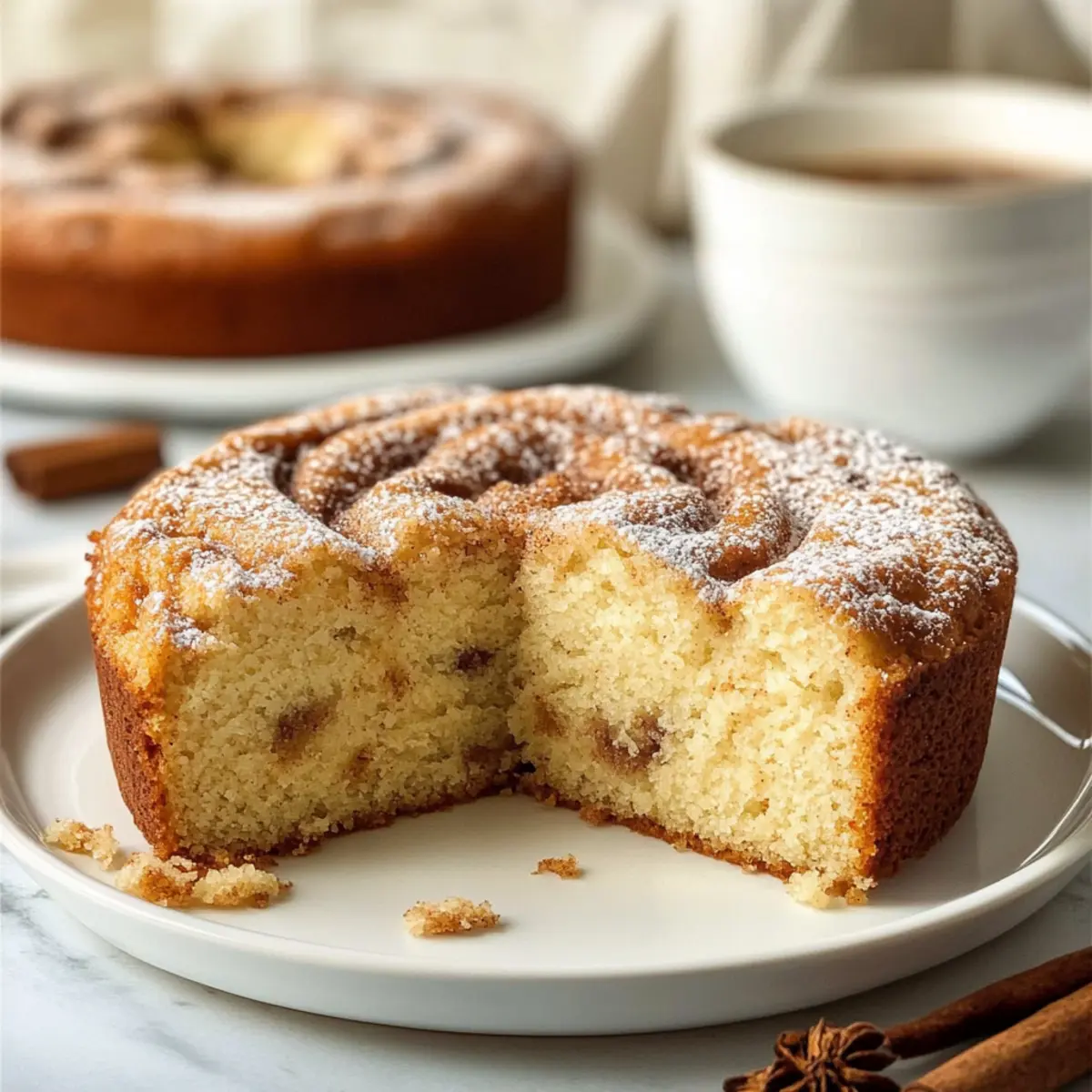Flavor-Packed: With a delicious cinnamon swirl and buttery notes, this cake strikes the perfect balance between sweet and slightly tangy.
