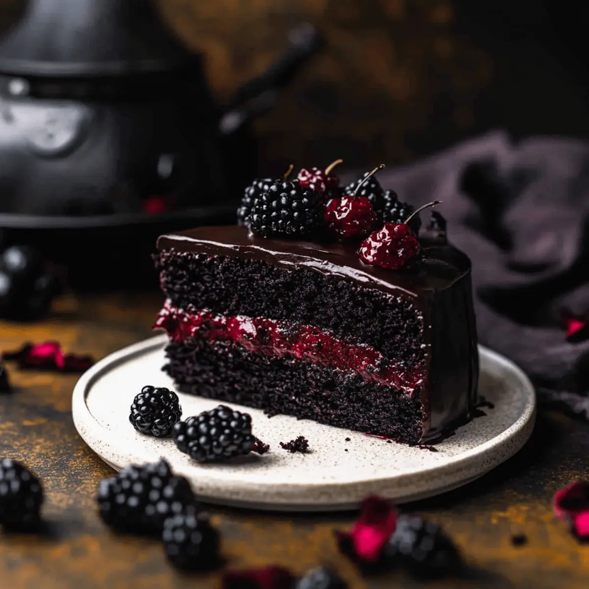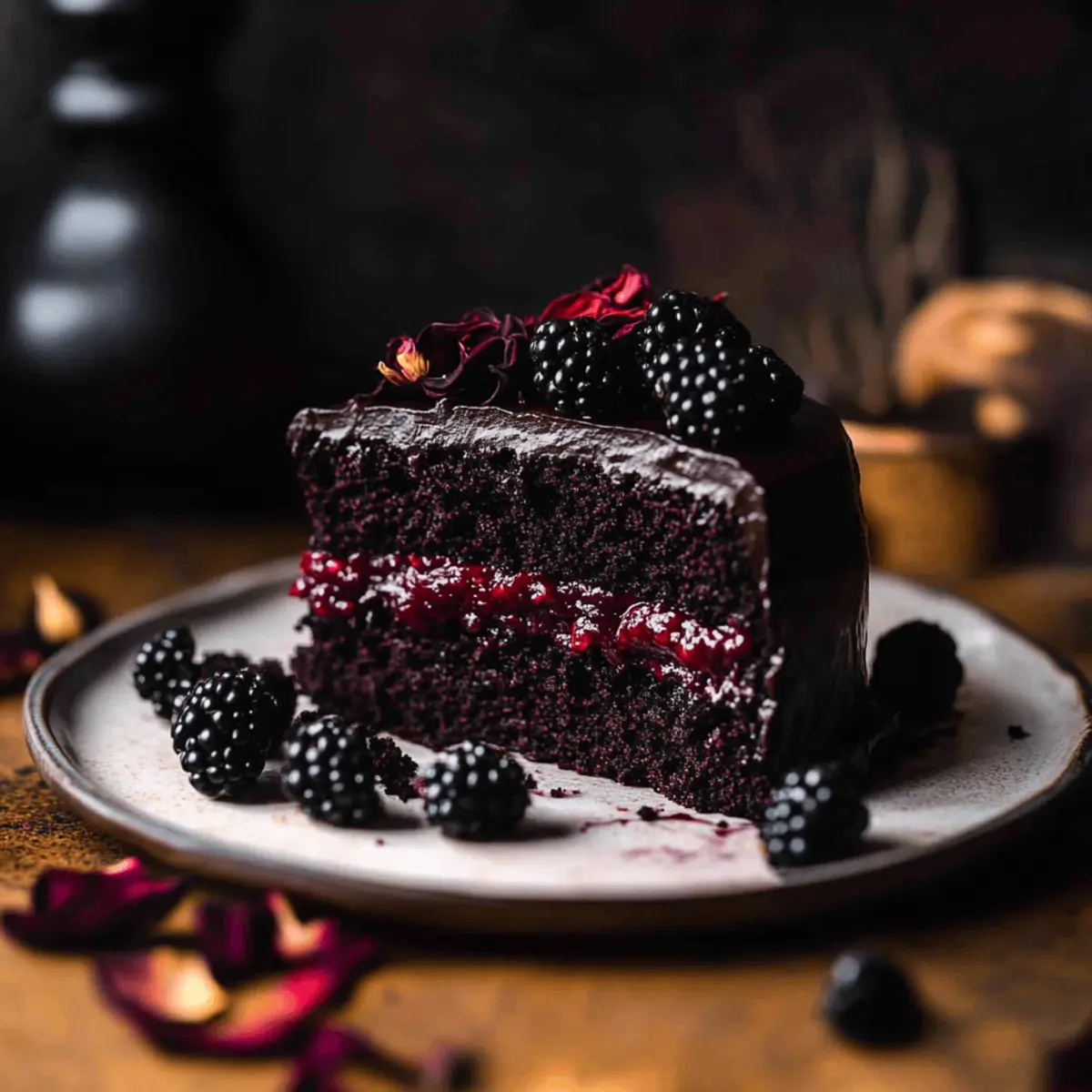 - Decorate with chocolate skulls, fresh blackberries, and dried rose petals to enhance the spooky theme.