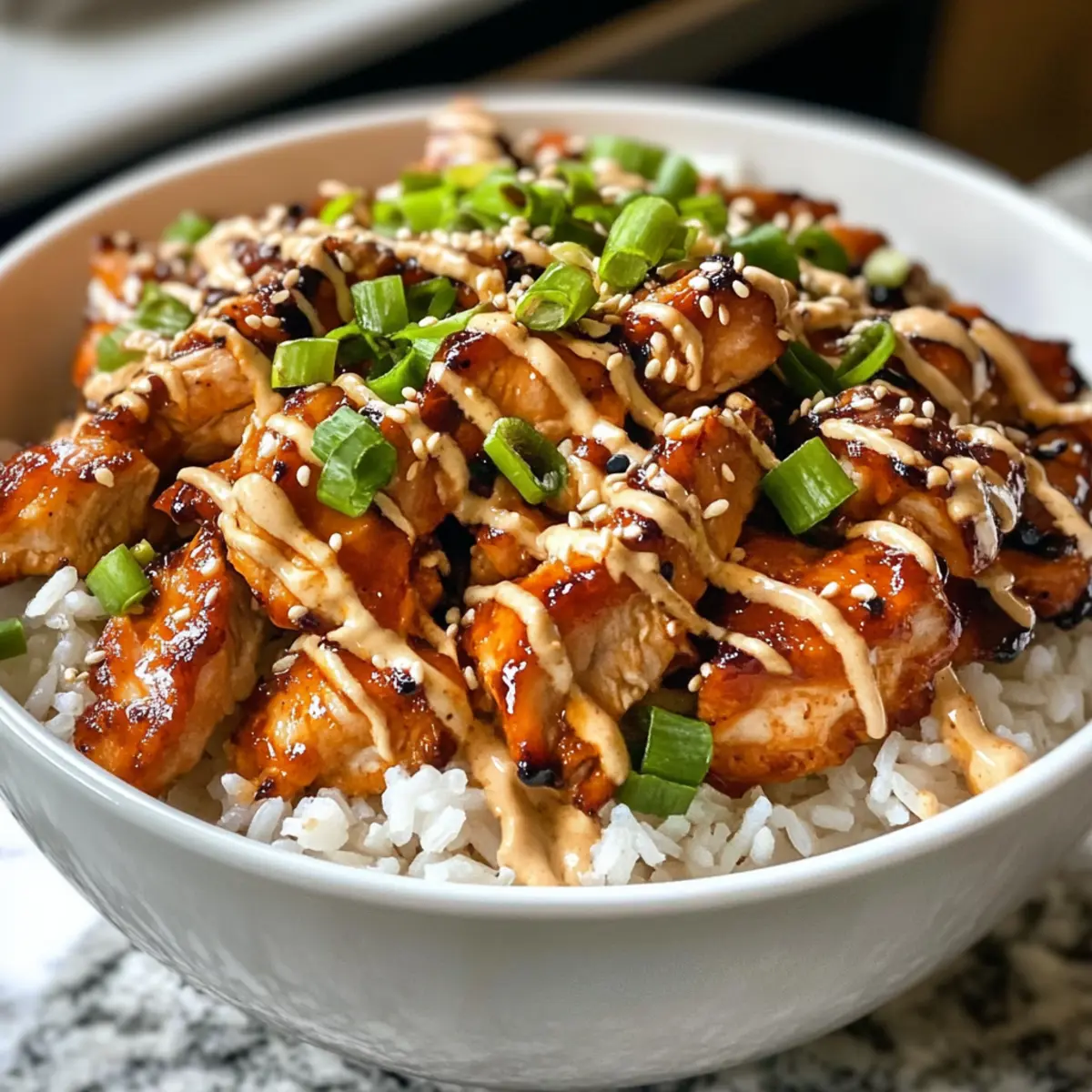 Yes! For a gluten-free option, use tamari instead of soy sauce. If you’re vegetarian, swap out the chicken for marinated tofu. For a low-carb variation, try cauliflower rice instead of jasmine rice. Always adjust the spicy mayo ingredients to suit your spice tolerance, and feel free to substitute mayonnaise with Greek yogurt for a lighter version.